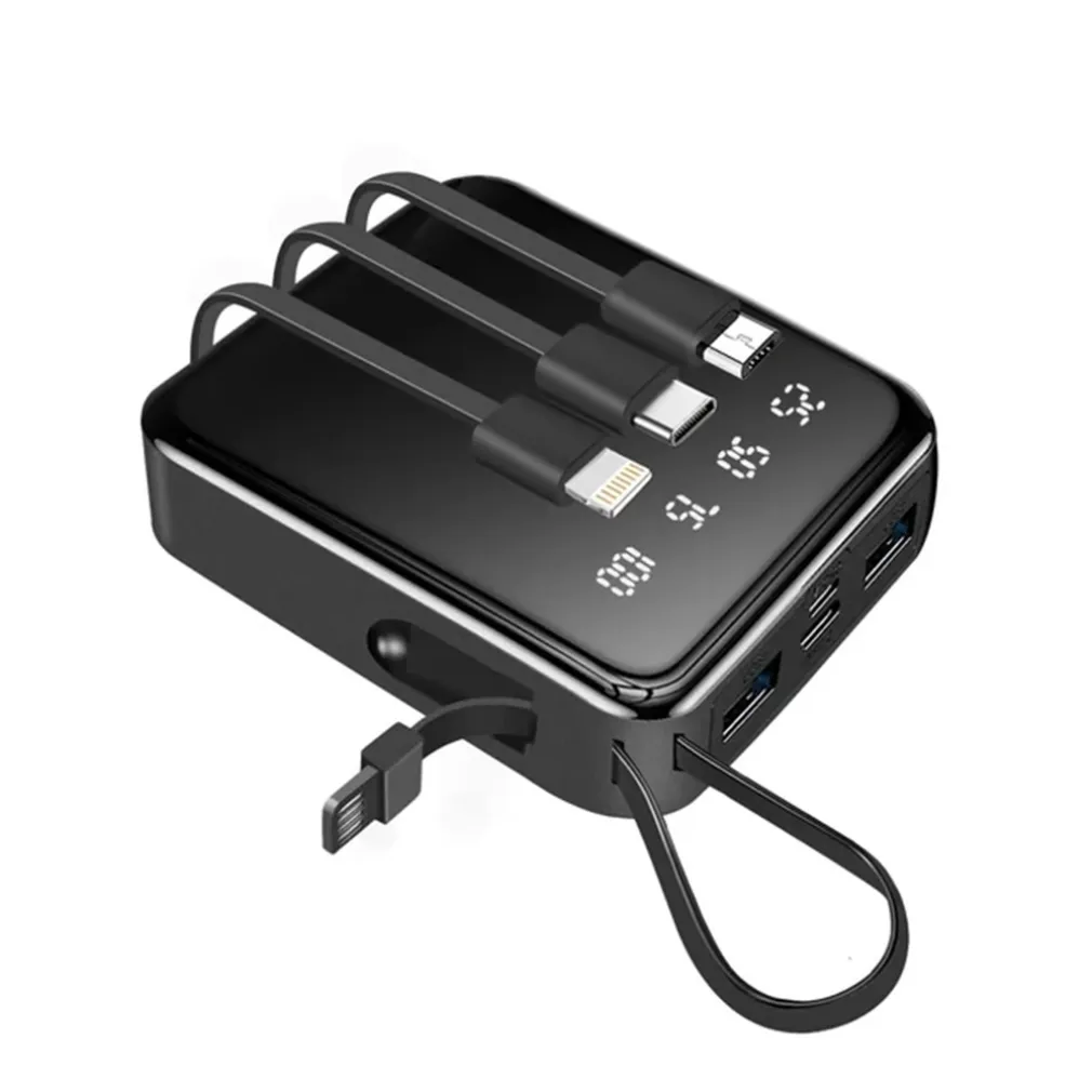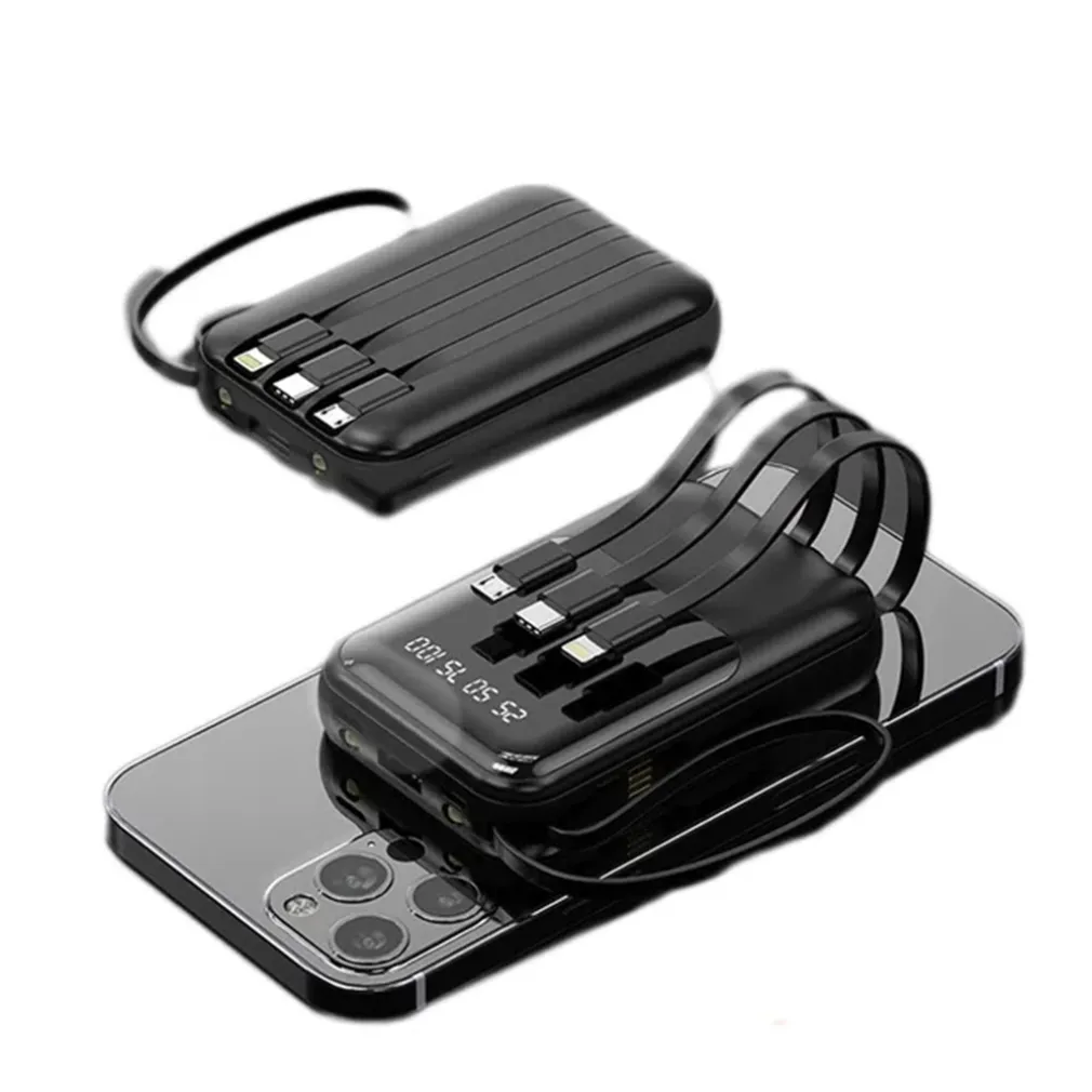 Basta collegare il cavo dati al telefono o a qualsiasi dispositivo digitale e inserire l’altra estremità nell’interfaccia USB del power bank. La ricarica partirà automaticamente. Una volta scollegato il dispositivo, il power bank si spegne da solo senza necessità di premere alcun pulsante.