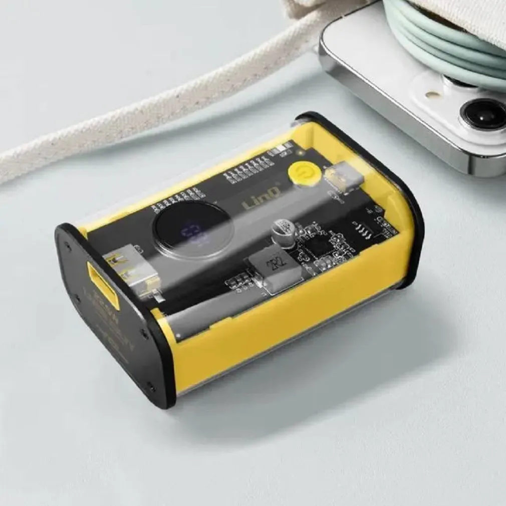 L’alleato ideale per gli spostamenti quotidiani. Per facilitarne l’uso, questa batteria esterna è dotata di un display a LED che mostra il livello della batteria in percentuale. La presenza delle porte USB e USB-C la rende compatibile con un’ampia gamma di dispositivi, quali smartphone, tablet, custodia degli auricolari, ecc. E grazie al suo involucro trasparente, presenta un aspetto moderno che permette di visualizzare i componenti interni. Con le sue dimensioni di 85 x 53 x 35 mm, è facile da riporre e trasportare. E una volta che il powerbank è scarico, è possibile alimentarlo con il cavo USB-C incluso nella confezione.