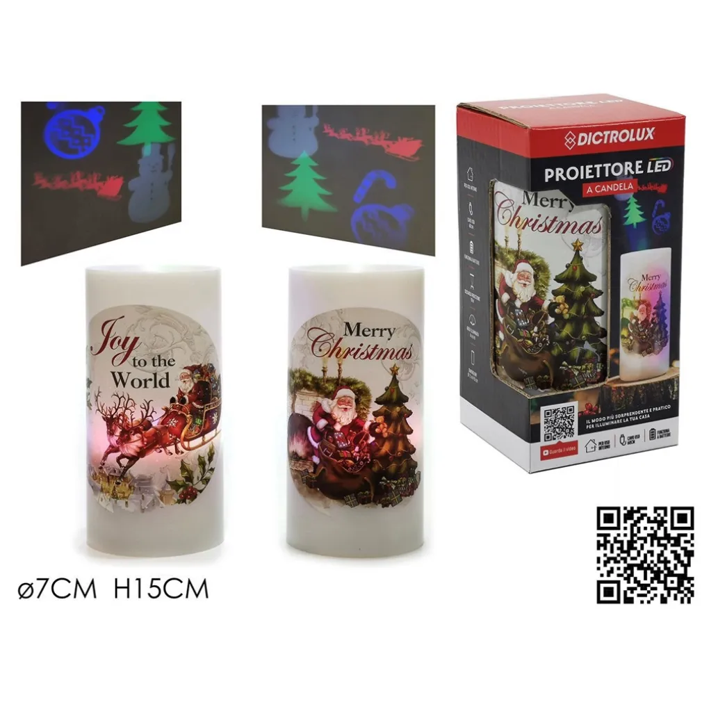 PROIETTORE LED A FORMA DI CANDELA NATALIZIA Φ7X15CM – Illuminazione Festiva Decorativa da Interno