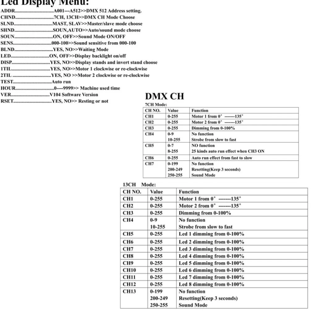 - Modalità di controllo opzionale – modalità Auto, suono attivo, DMX512