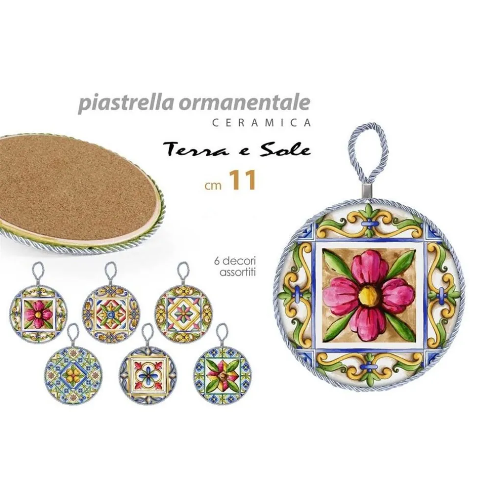 Quadretto Piastrella Ornamentale in Ceramica 11 cm Terra e Sole 6 Decori 828911