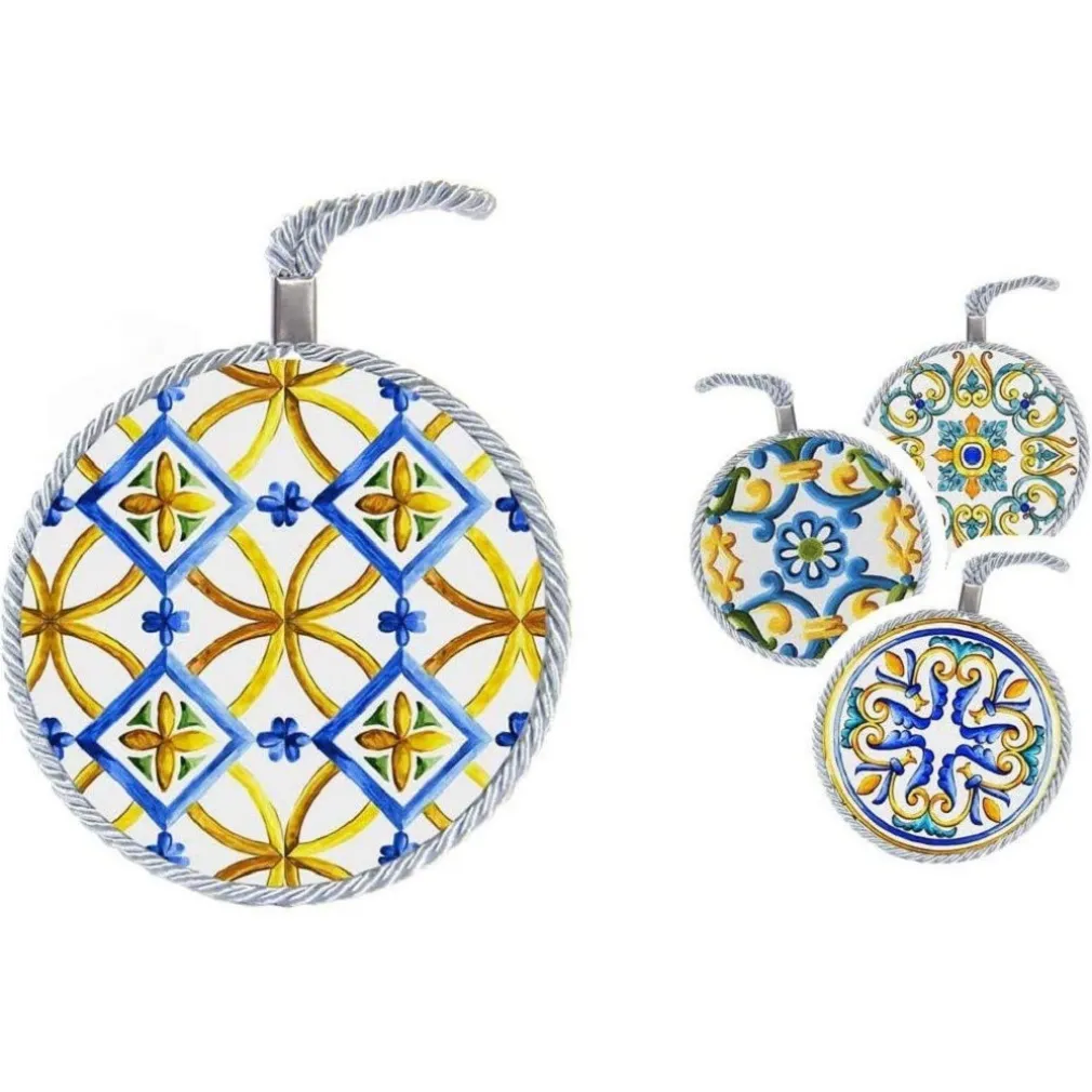 QUADRO QUADRETTO TONDO IN CERAMICA TERRA D’AMURI DECORI ASSORTITI 11 CM 816529