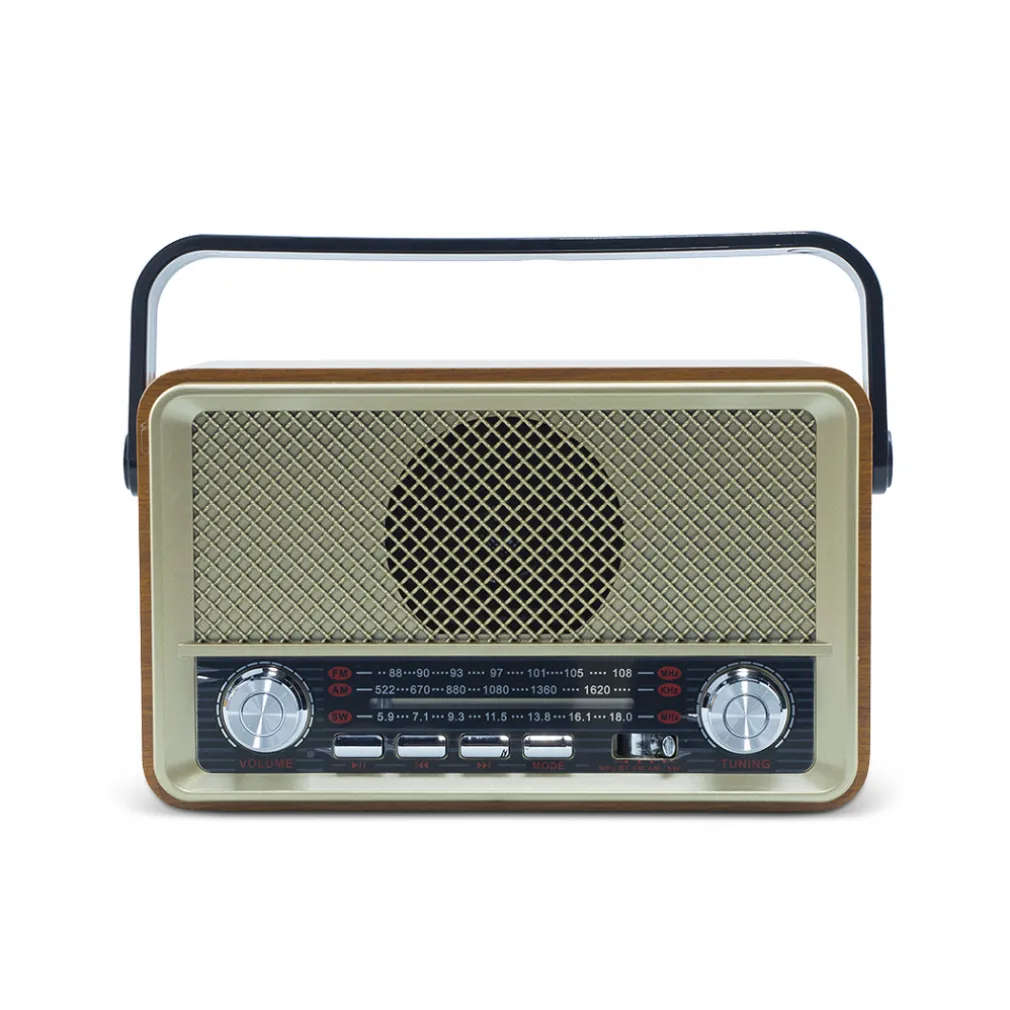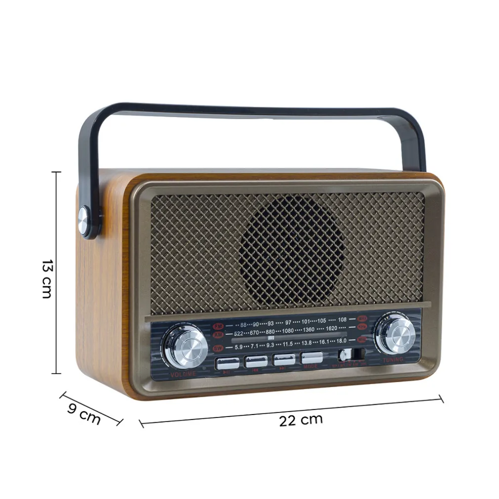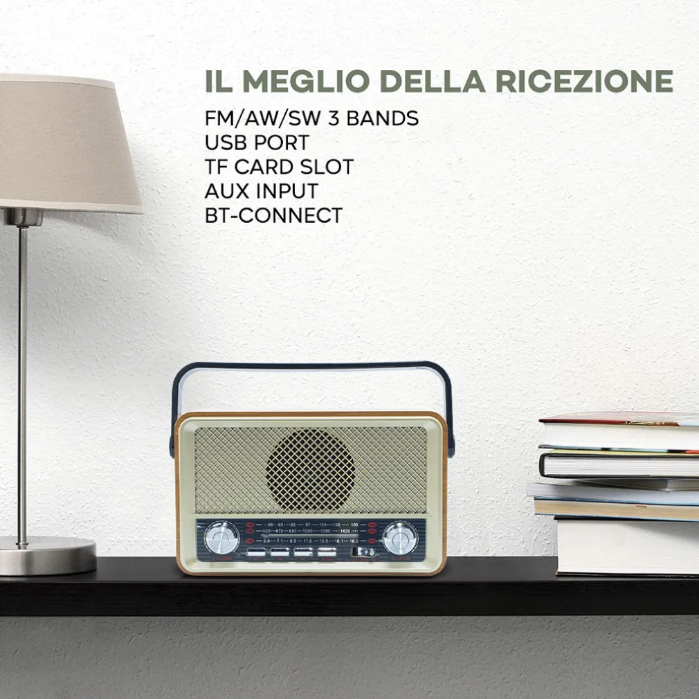 Rivivi gli anni 50″ con questa Radio in pieno stile retro, ideale per gli amanti del vintage. Questo dispositivo è qualcosa di più di una radio. Supporta unità flash, TF card e Bluetooth e consente all’utente di riprodurre file MP3 memorizzati. Grazie alla qualità eccezionale del suono, non ti stancherai mai di ascoltare la tua musica preferita. Dotata di bluetooth, la radio può connettersi a qualsiasi dispositivo in un solo secondo. Comoda, leggera e portatile, da portare ovunque tu voglia. Dispone di indicatore di ricarica, si spegne quando l’unità è completamente carica, rendendo il processo di ricarica semplice e senza problemi. Un vero e proprio gioiellino del vintage e della musica. Tieni la musica accesa e goditi il momento intimo con la persona amata!