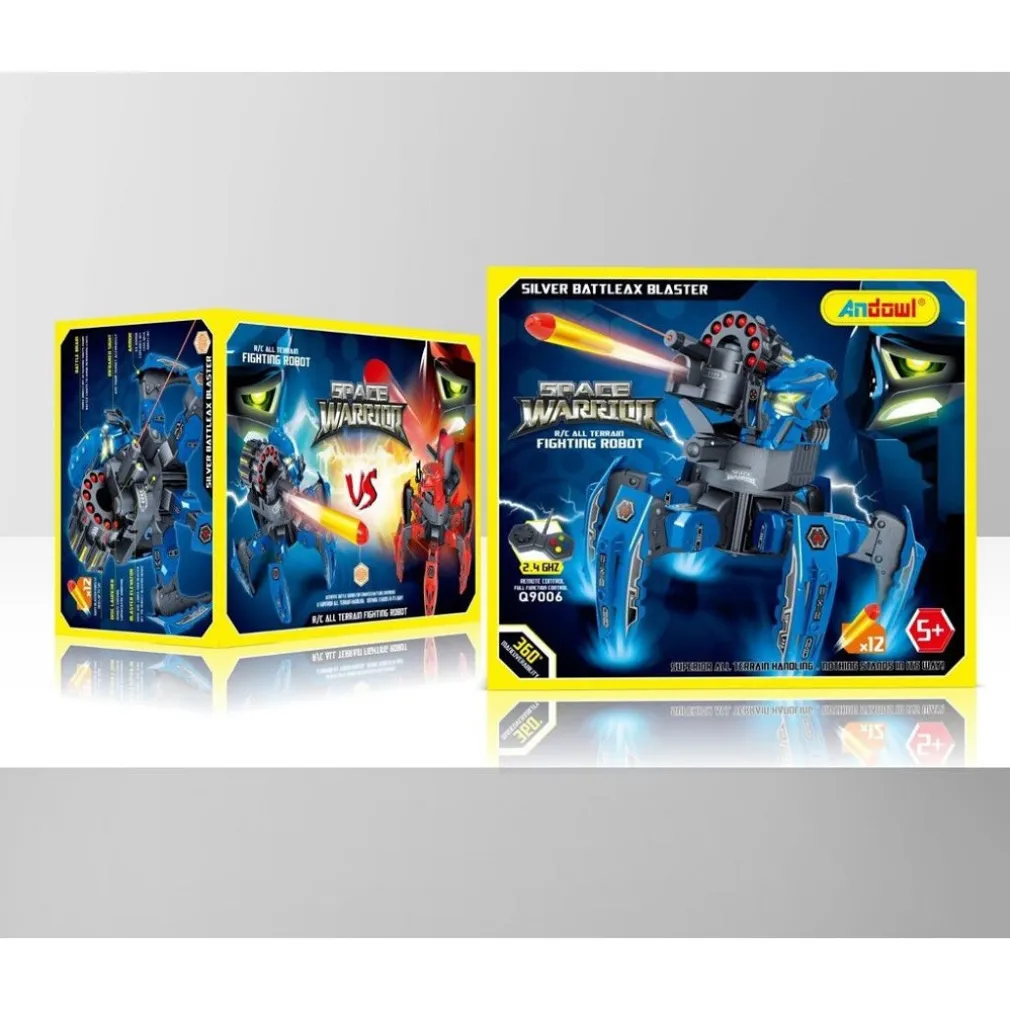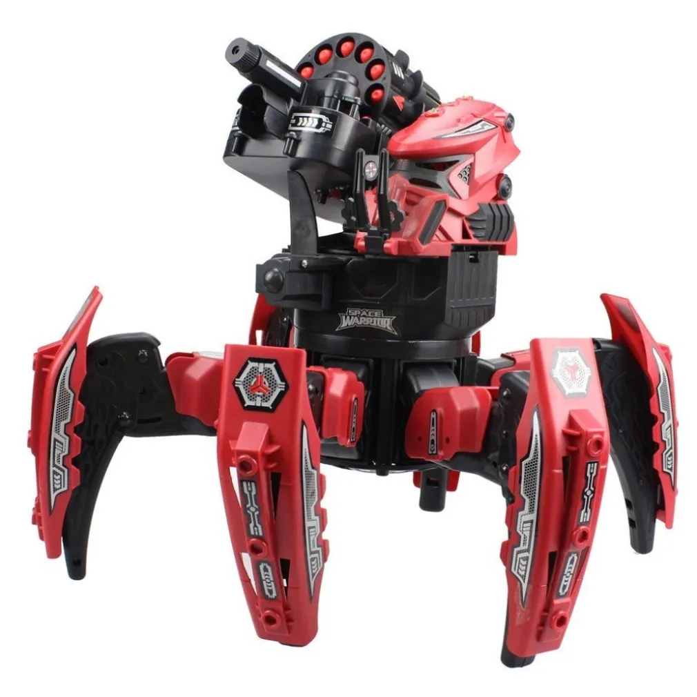 Dark mars spider space warrior blaster robot da combattimento telecomando giocattolo con puntatore bersaglio minore. Incespica per la stanza alla ricerca di un bersaglio. Il tuo robot a sei zampe è una macchina minacciosa che porta vere battaglie nel tuo salotto. Alto circa 10 pollici con sei gambe e una testa rotante a 360 gradi, il tuo soldato ragno risponde ai comandi che fornisci con il telecomando wireless 2. 4Ghz facile da usare. Muoviti, lancia missili di schiuma e generalmente domina il tuo ambiente locale.