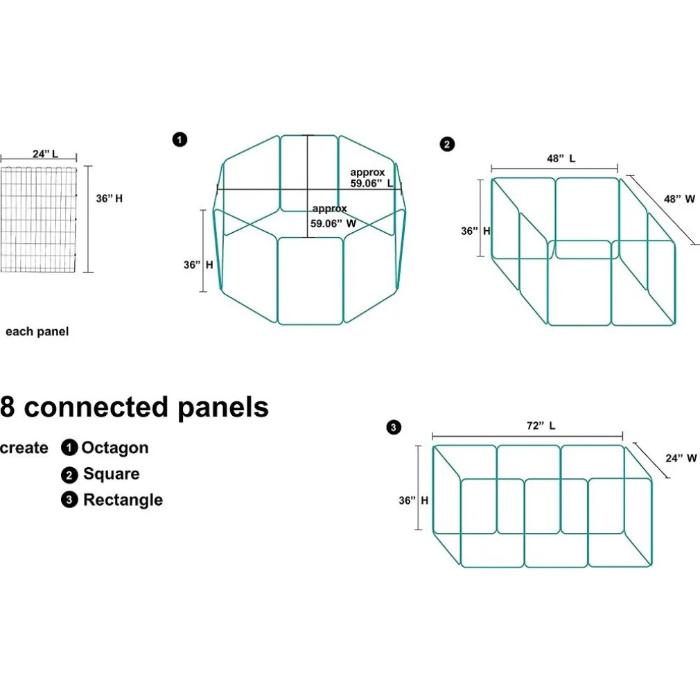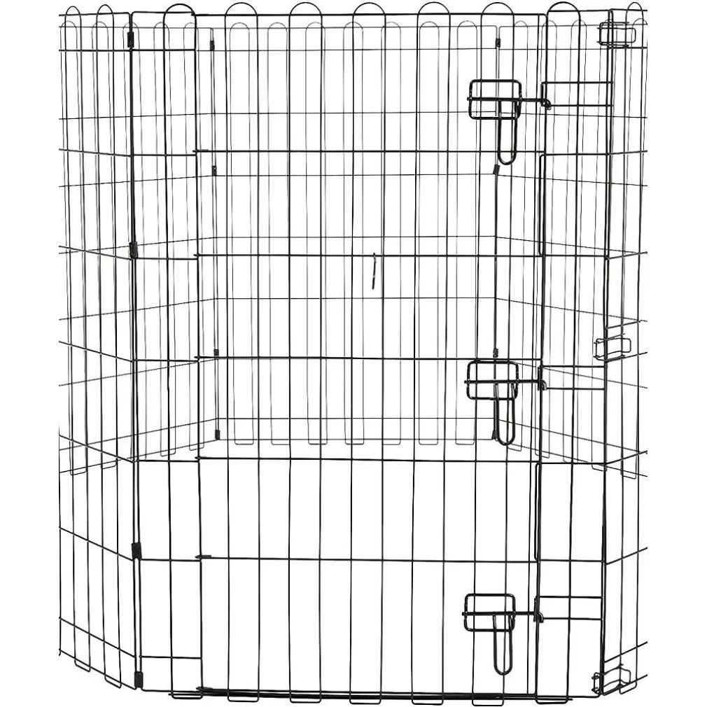 - La recinzione si monta rapidamente e in tutta semplicità, senza bisogno di attrezzi. Gli 8 pannelli in metallo sono connessi tramite cerniere in metallo, diventando un unico pezzo che si apre e chiude come una fisarmonica. Potrai dare alla recinzione la forma di un cerchio, un quadrato, un rettangolo o una qualsiasi altra forma. Chiudi i pannelli tramite i ganci in metallo (inclusi). I pannelli possono anche essere usati per delimitare aree di una stanza a cui non vuoi che i tuoi cuccioli accedano. Puoi anche connettere la recinzione a una gabbia in metallo (non inclusa), per creare la perfetta combinazione fra spazio gioco e area relax. Se posizionata all’esterno, potrai assicurare la recinzione al terreno grazie ai picchetti a U in metallo in dotazione. Connetti facilmente 2 set per raddoppiare lo spazio (venduti singolarmente).