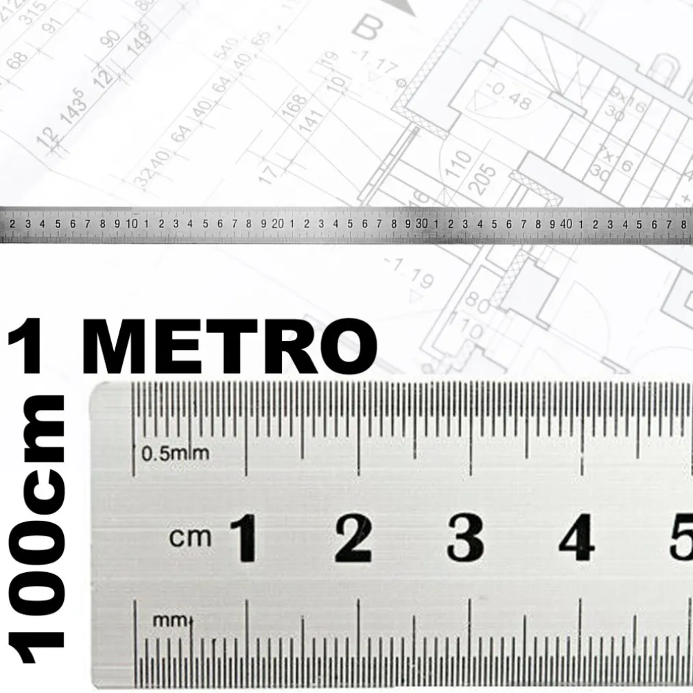 RIGHELLO METRO 1 MM A 100 CM 1 METRO IN METALLO ACCIAIO MISURAZIONE RIGA MULTIFUNZIONE SEGNATURA CM E INCH SCALA DOPPIA.
