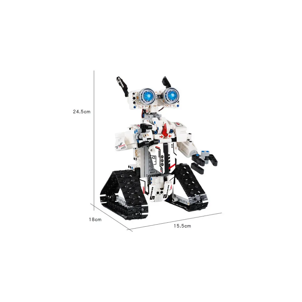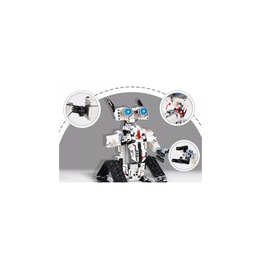 Robot unico e ricaricabile che i tuoi bambini possono realizzare con gli oltre 477 mattoncini inclusi nella confezione. Puoi controllarlo con il telecomando o scaricare l’app di controllo corrispondente sul tuo cellulare. Si muove in qualsiasi direzione desideri il bambino, permettendogli infinite ore di gioco! Realizzato con materiali di alta qualità. Angoli lisci che non danneggeranno le mani dei tuoi bambini. I giochi strutturali coltivano la concentrazione, esercitano abilità pratiche, aiutano nello sviluppo delle capacità motorie fini e promuovono la coordinazione occhio-mano. Con un numero di parti, il robot mette alla prova la destrezza, l’attenzione, la creatività e l’immaginazione del tuo bambino in termini di assemblaggio. Una volta assemblato e acceso, il robot è dotato di illuminazione a LED, bracci girevoli e binari, che ne facilitano i movimenti. Il robot può essere facilmente controllato con il telecomando da una distanza massima di 30 metri, inoltre il giocattolo offre la possibilità di programmare un percorso specifico.