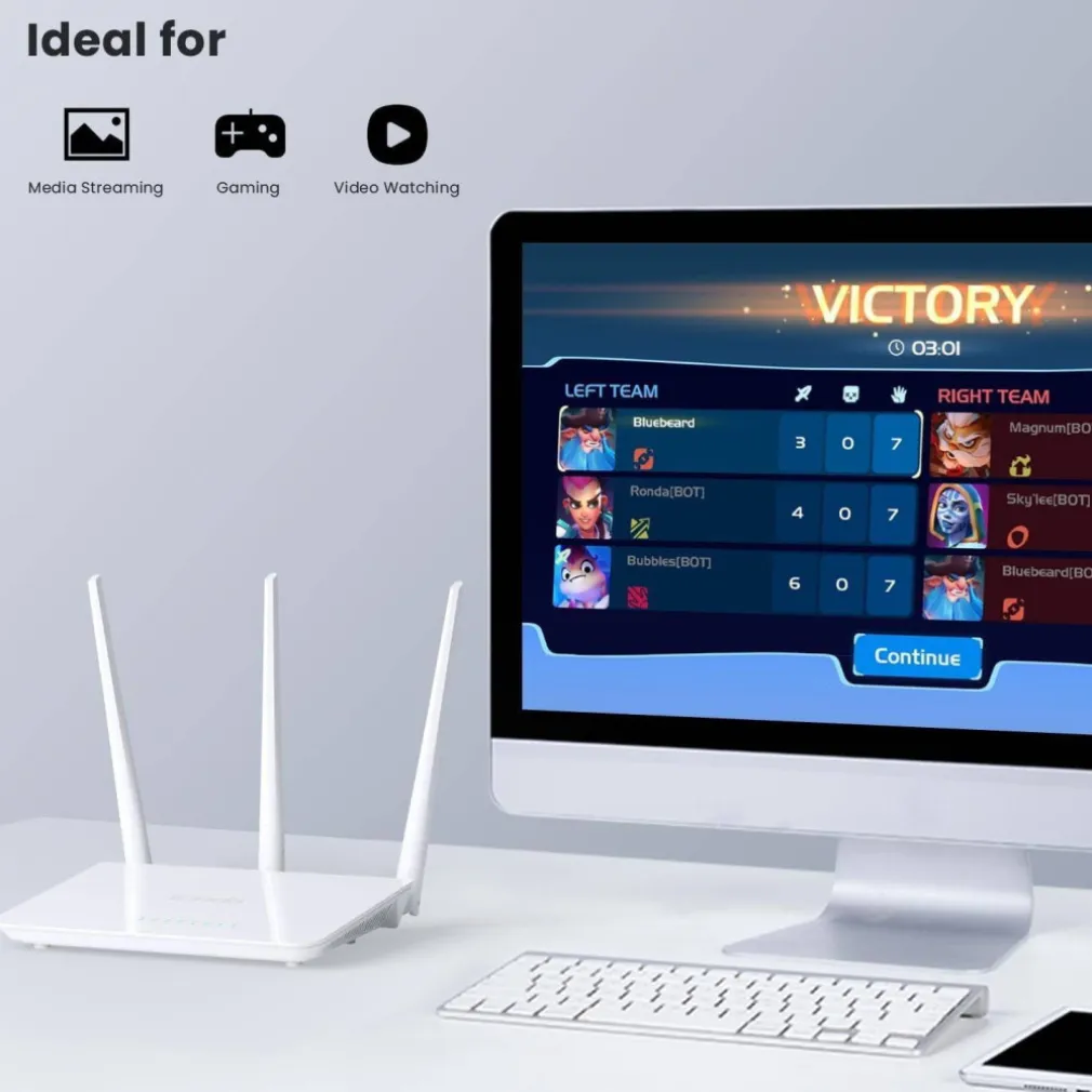 - Router Wi-Fi – Compatibile IEEE 802.11b/g/n, velocità wireless 2.4 GHz fino a 300Mbps, è ottimale per le esigenze di base di Internet come streaming video, down/upload di file, navigazione web e chat online.