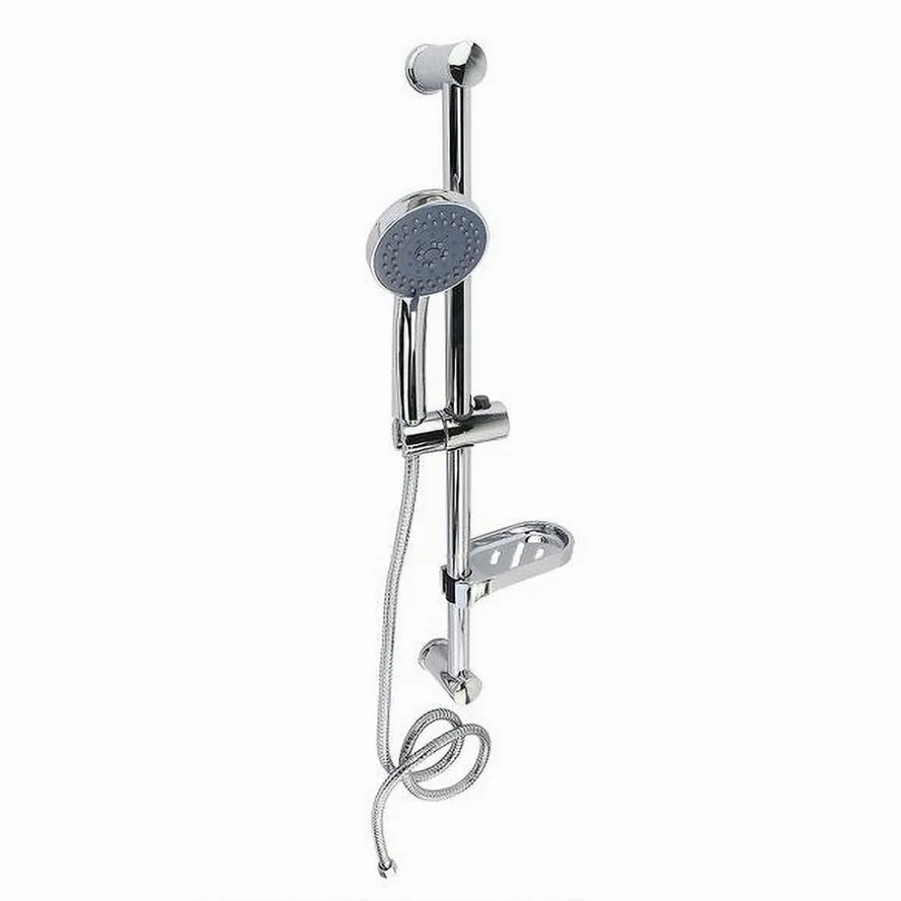 Nella confezione troverai il saliscendi doccia cromato, la doccetta multigetto, il tubo flessibile di 150 cm, il portasapone.