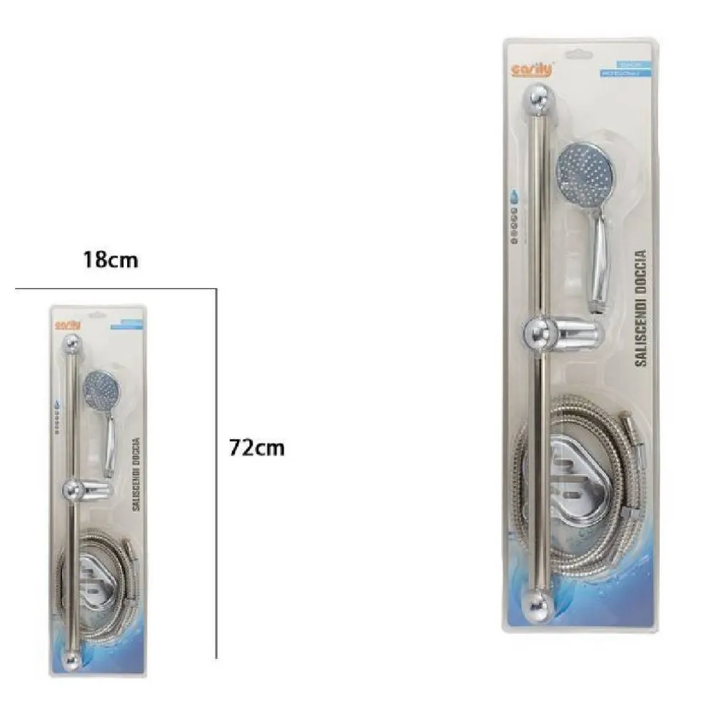 Saliscendi cromato con soffione multi getto.