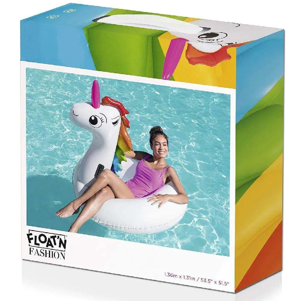 - 1 x Salvagente Unicorno Cavalcabile Bianco Arcobaleno Ciambella 136x131cm