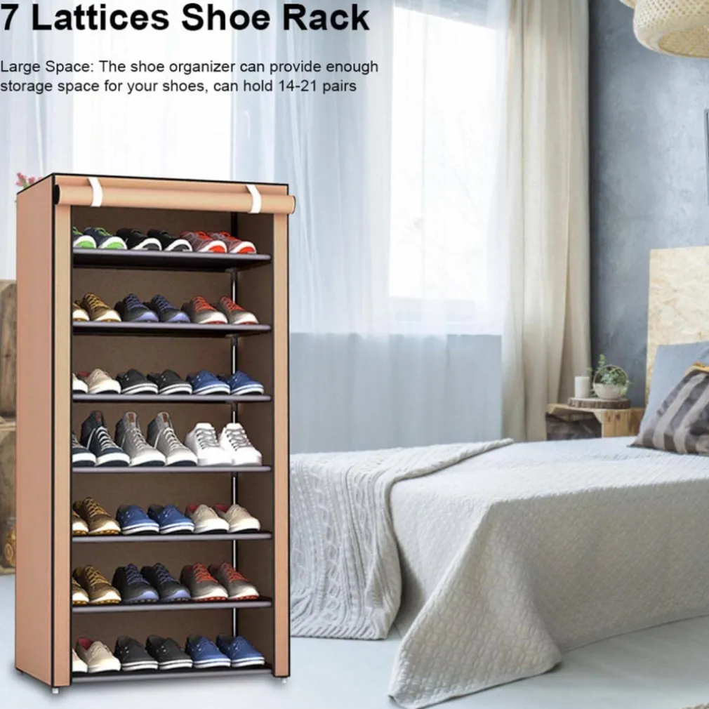 Scarpiera Salvaspazio 7 Ripiani 21 Paia Scaffale PE e Tessuto TNT