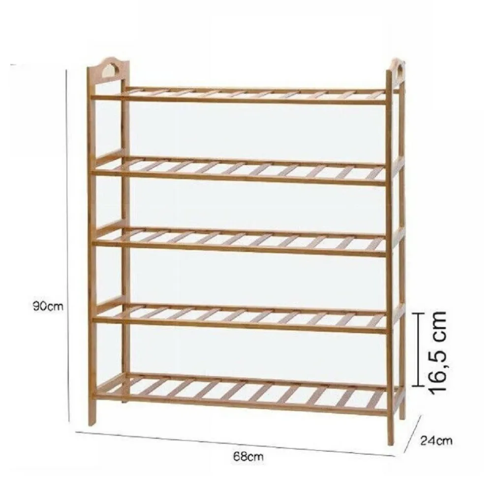 Scarpiera Porta Scarpe 5 Ripiani Piani In Legno Bamboo Scaffale Mobile