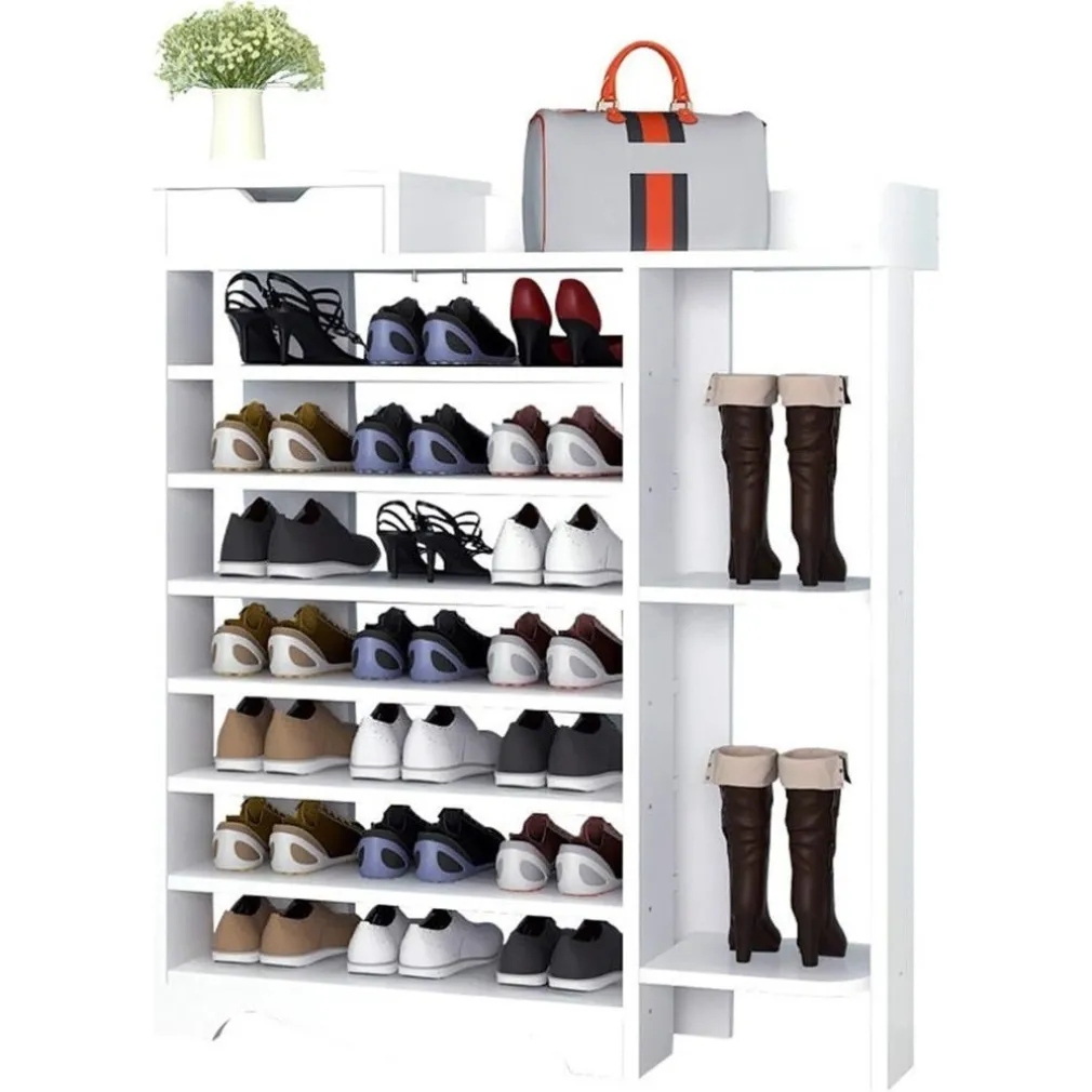 1x Scarpiera Portaoggetti Scaffale 8 Ripiani in legno bianco
