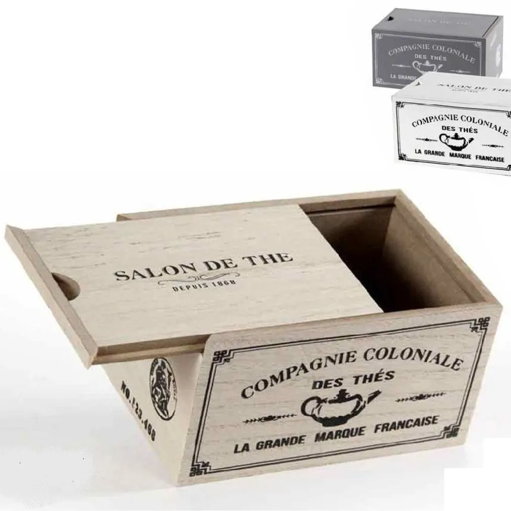 - 1x Scatola Porta Oggetti Bustine The Tè Cialde Caffè 16x11x9 cm Legno Decori 738661
