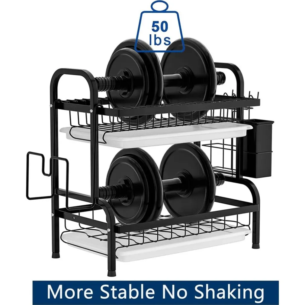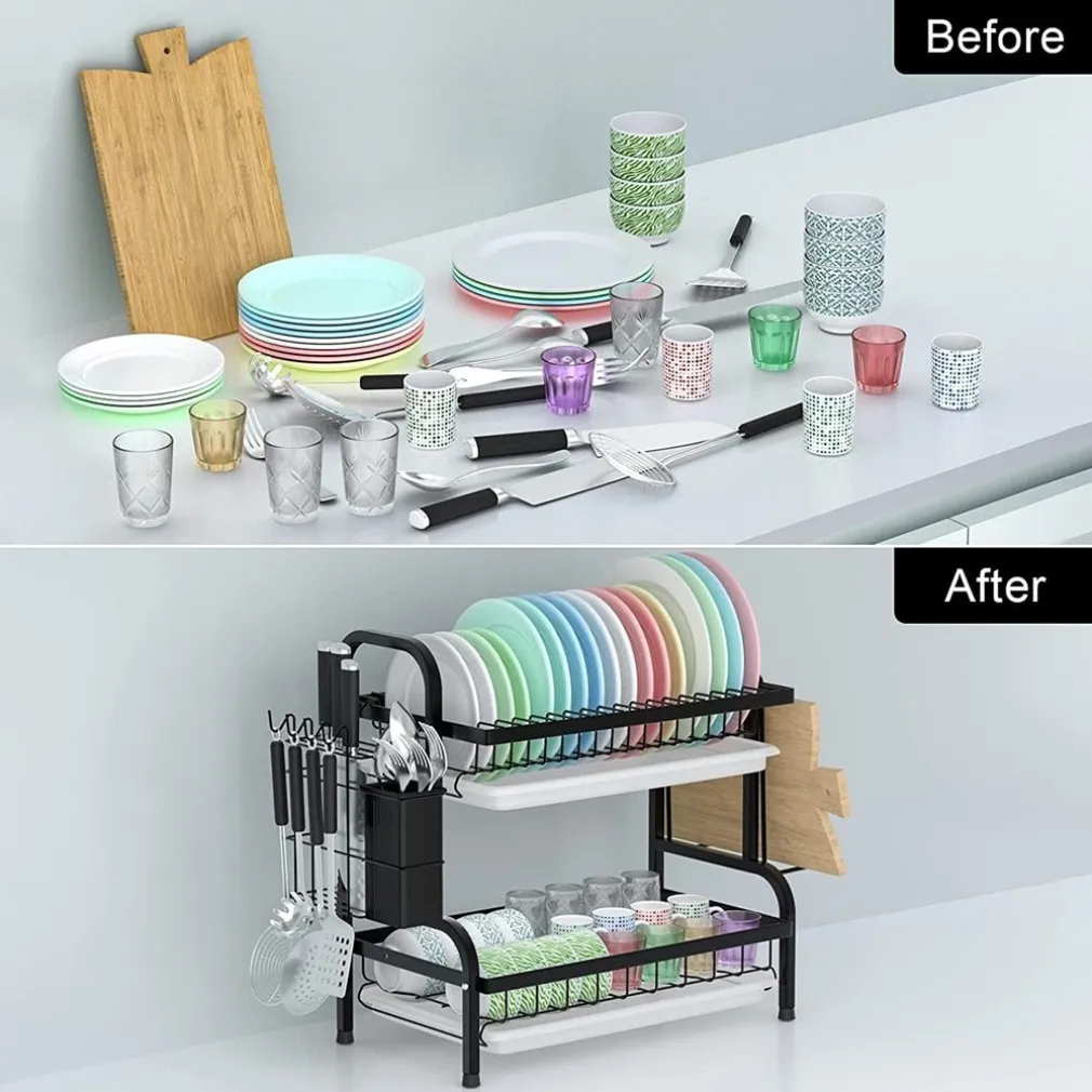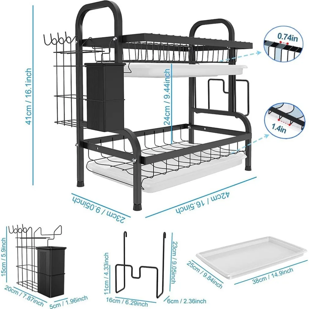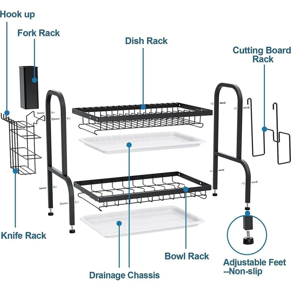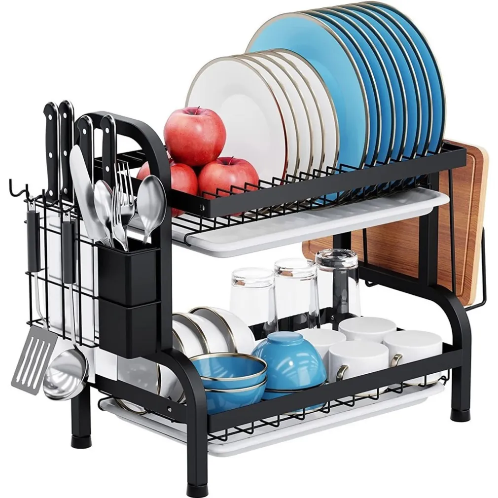 Scolapiatti Appoggio Lavello Acciaio a Doppio Strato Vassoi Scaffale Portaposate