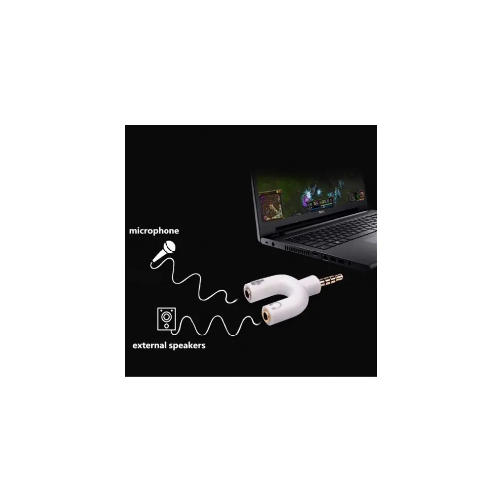 Infatti questo adattatore a forma di U ha 2 ingressi femmina 3.5 mm per microfono e cuffie, ed ha una sola uscita jack maschio 3.5