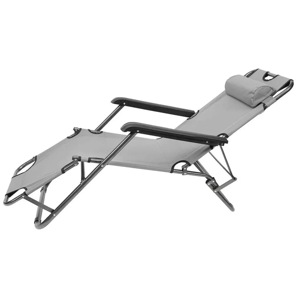 SEDIA A SDRAIO LETTINO PIEGHEVOLE RECLINABILE IN METALLO CON POGGIATESTA GRIGIO 017055