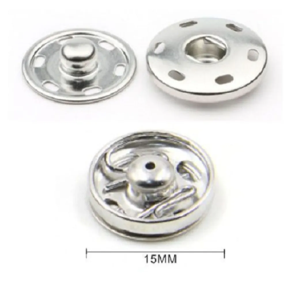 Questi bottoni automatici a pressione da cucire hanno un diametro di ø 15mm. Questo kit scorta di bottoni è progettato come ricarica per i tuoi prossimi progetti di cucito e creativi. Questo kit di bottoni automatici arricchiscono la tua scorta e ti aiuterà con i tuoi progetti di cucito in pelle, cotone, tessuto sintetico, poliestere e denim.