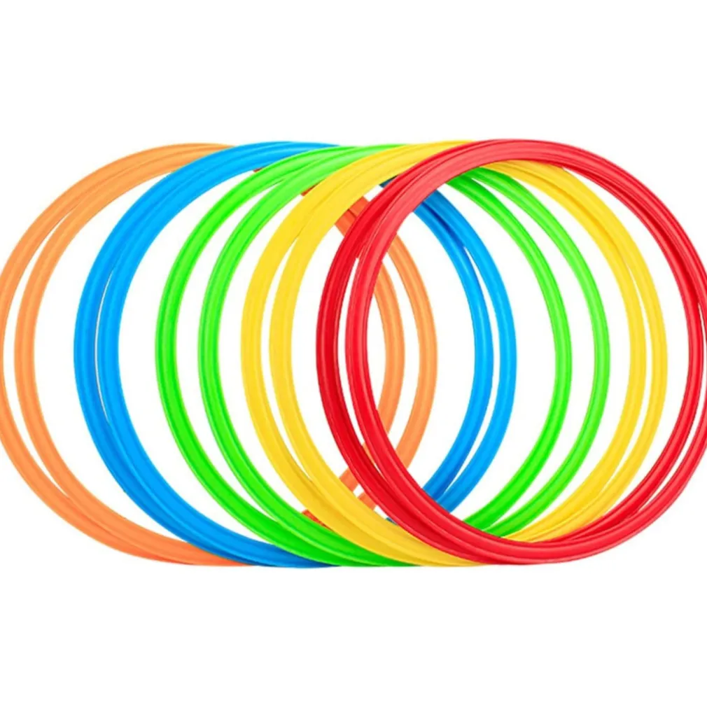 cerchi piatti colorati, fitness, esercizi di coordinazione, terreni duri, allenamento di corsa, scatto, salto, diametro 50 cm, giallo, rosso, verde, blu, set da 12 pezzi, design ultraleggero, versatilità, scuole, centri sportivi.