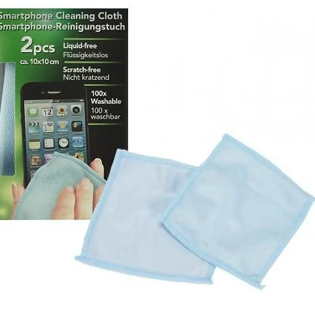 Due panni in microfibra per la pulizia schermo dei smartphone. Il kit comprende due panni di dimensioni ca. 10×10 cm, i quali puliscono il display del proprio apparecchio senza l’aggiunta di liquidi o detergenti.