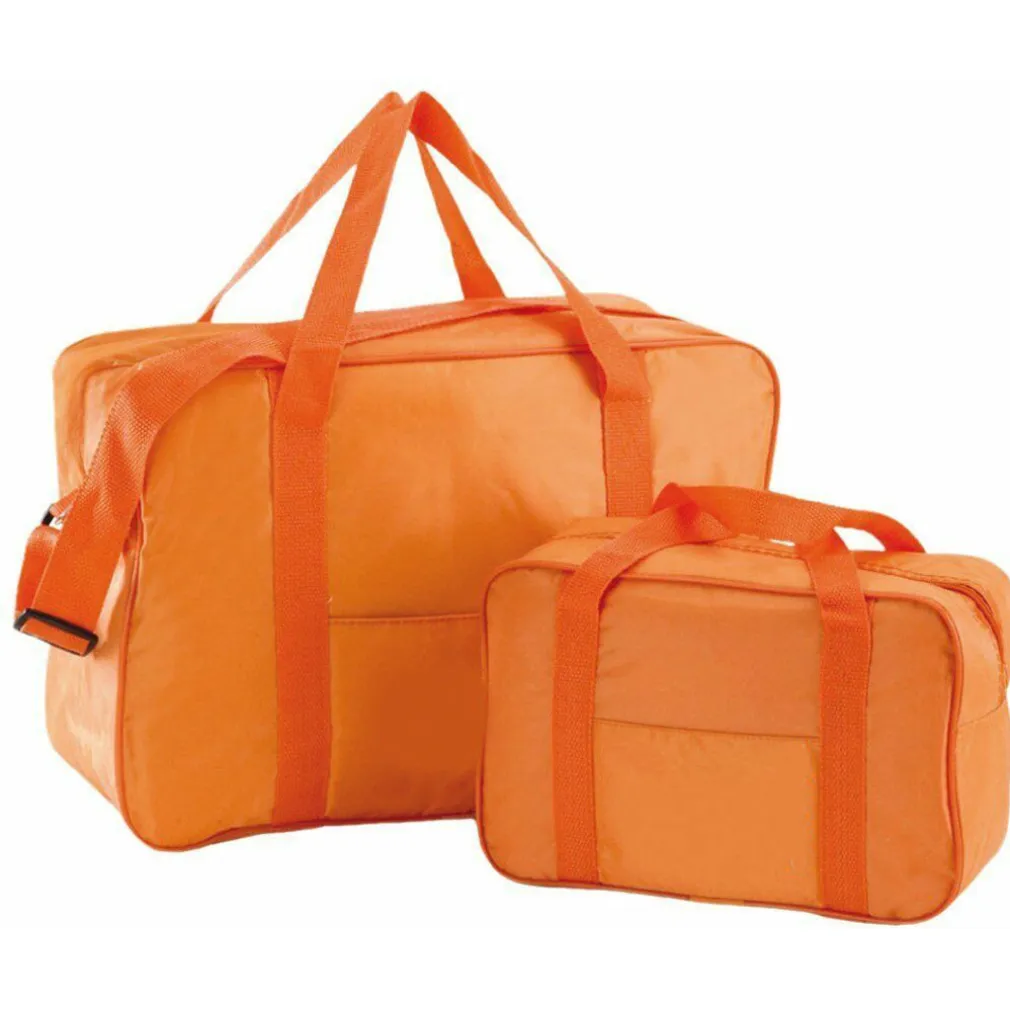 Set 2 pezzi borse termiche. Ideali per una giornata al mare, campeggio, pic nic e da viaggio. Disponibili in vari colori assortiti. Le Borse termiche sono il set ideale, comprende due comode borse termiche di differente capacità: 6,0 e 21 litri. Apertura centrale molto ampia rende più semplice l’accesso degli alimenti. La borsa da 21 litri è provvista di manici e tracolla, che permettono di trasportarla con estrema comodità. Il set è disponibile in diverse versioni di colore: Arancione, Giallo, Verde e Blu.