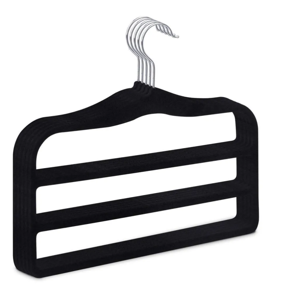 - Appendi Pantaloni: Ogni gruccia è dotata di 3 spazi dedicati per appendere i pantaloni in modo ordinato e senza pieghe indesiderate.