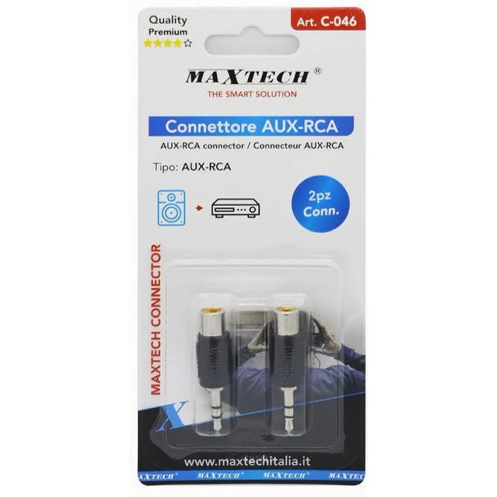 Scopri la soluzione ideale per le tue esigenze audio con il SET 2 PZ CONNETTORE ADATTATORE AUDIO SPINA RCA FEMMINA A AUX 3,5MM MASCHIO C-046. Questo versatile adattatore audio da RCA femmina a AUX 3,5 mm maschio jack audio è progettato per offrirti una connessione sicura e affidabile tra diversi dispositivi audio, consentendoti di goderti la tua musica preferita senza compromessi. Sia che tu stia collegando il tuo smartphone a un sistema stereo o che tu voglia utilizzare un dispositivo audio più vecchio, questo adattatore è la scelta perfetta.