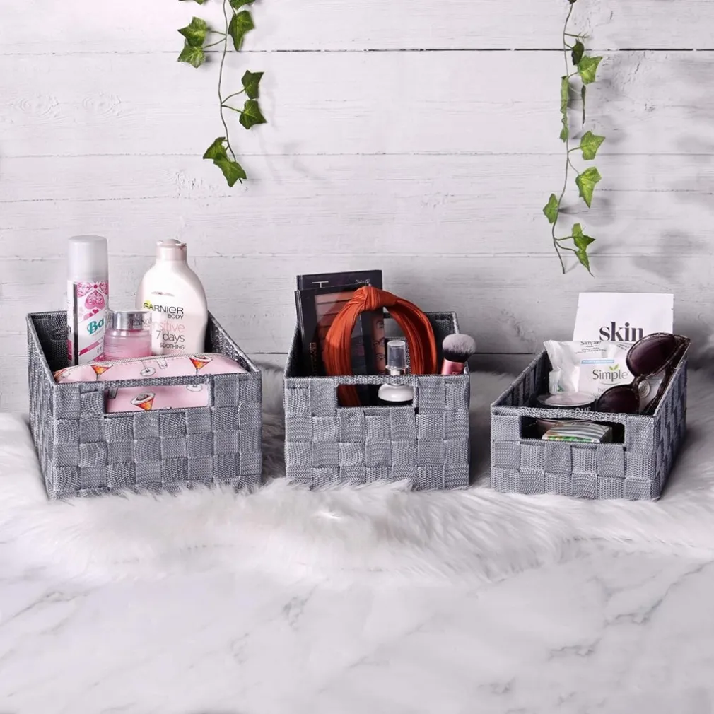 Il set è realizzato in tessuto di alta qualità, disponibile in un elegante colore grigio chiaro, ed è dotato di manici per una maggiore praticità. Le scatole sono di diverse dimensioni per soddisfare ogni esigenza di organizzazione.