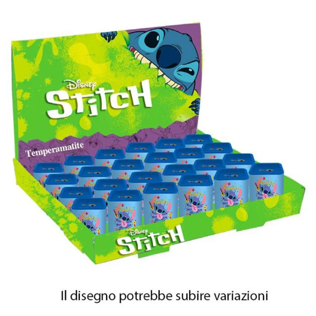 SET 24PZ TEMPERAMATITE IN LATTA QUADRATO DOPPIO FORO STITCH SCUOLA REGALI BAMBINI