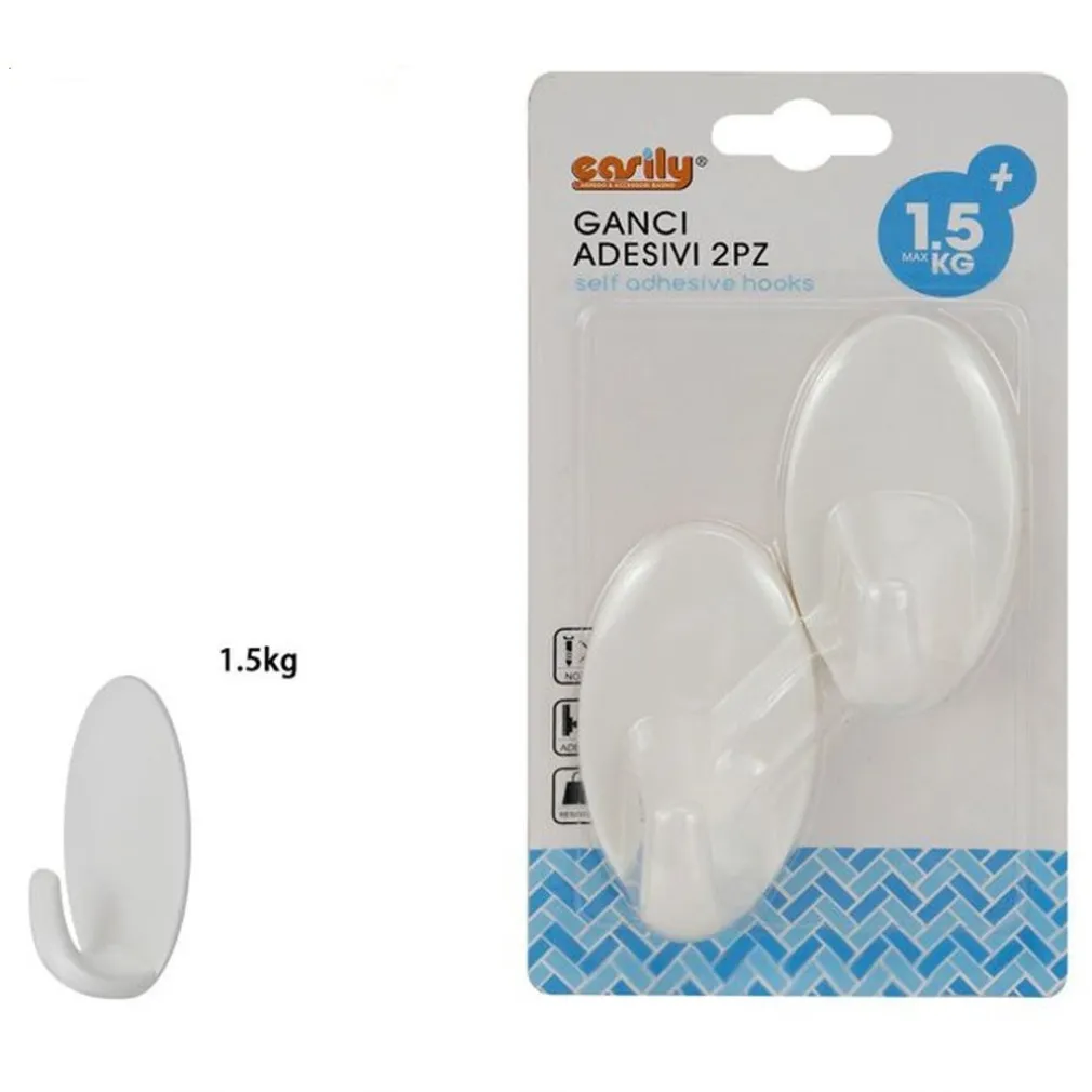 SET 2PZ GANCI APPENDINI ADESIVI PARETE CASA CUCINA BAGNO ATTACCAPANNI OVALI 59676