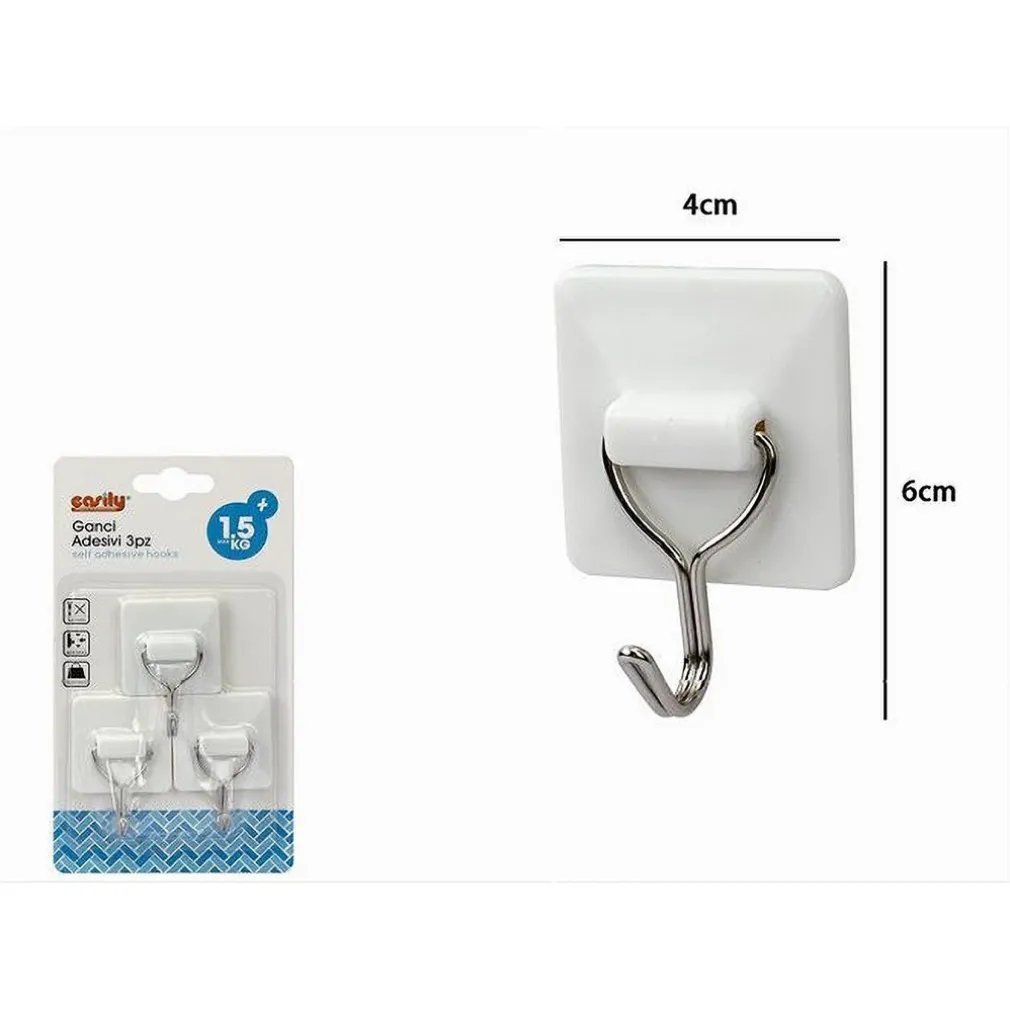 Il set include tre ganci adesivi quadrati, ideali per essere utilizzati in diverse stanze della casa come cucina, bagno e camera da letto.