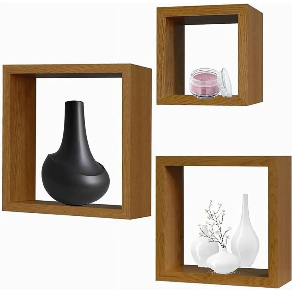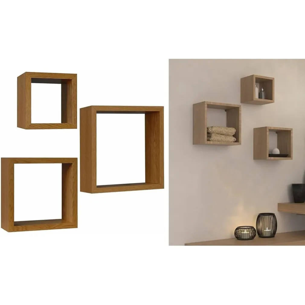 Set 3 Mensole da Parete a Cubo Moderne Design Quadrato Effetto Legno – Trade Shop Italia