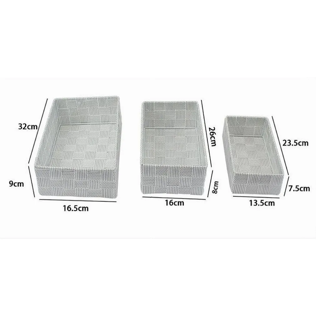 SET 3PZ SCATOLA PORTAOGGETTI TESSUTO INTRECCIATO CONTENITORI GRIGIO CHIARO 79054