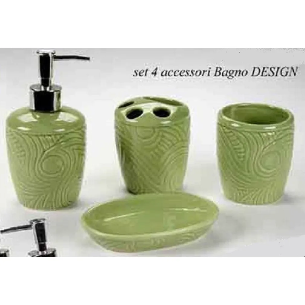 Cosa include il set 4pz accessori bagno in ceramica? Il set include un porta spazzolino, un porta sapone liquido e un porta sapone solido, tutti realizzati in ceramica di alta qualità.