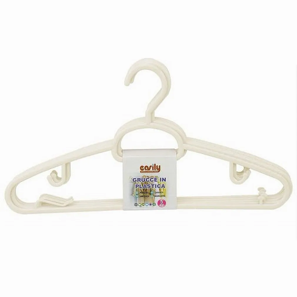 Set 5 Pz Grucce in Plastica Stampelle Appendiabito Pantaloni Giacche Beige 79326