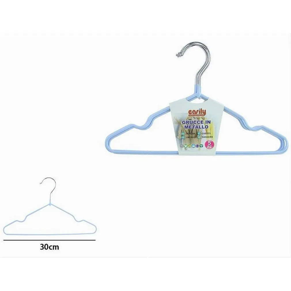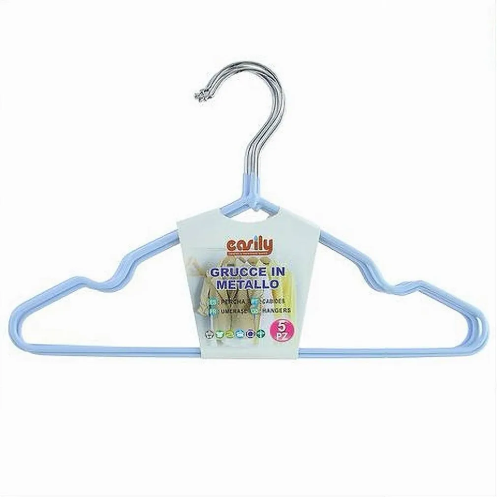 Perché scegliere il Set 5 pz Grucce Stampelle Appendiabiti Metallo Gommate Antiscivolo Celeste 87672?