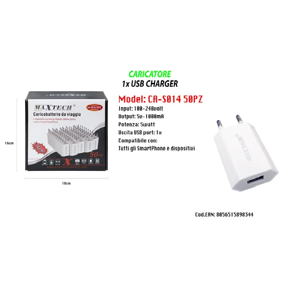 Caricabatterie da rete compatibile con la maggior parte degli smartphone e dispositivi