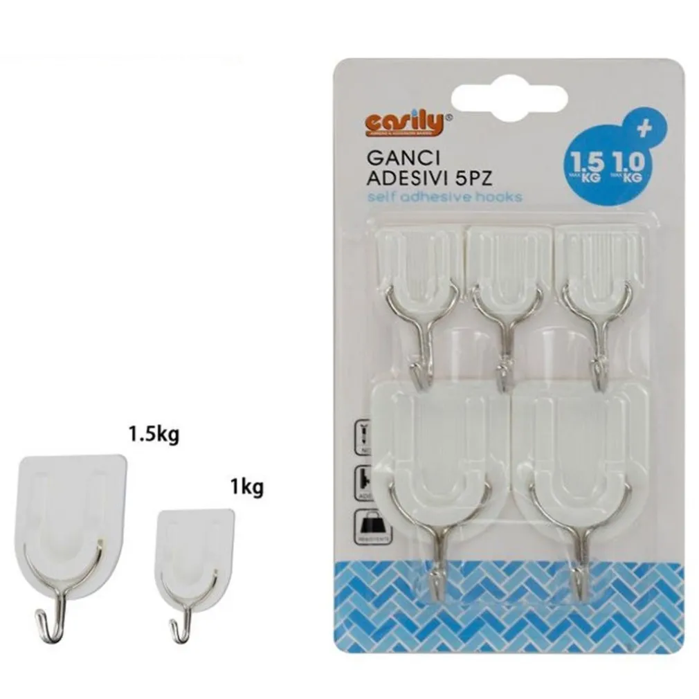 Il Set 5pz Gancio Attaccapanni Adesivo Bianco è la soluzione perfetta per organizzare lo spazio in modo elegante e funzionale. Questo set di attaccapanni adesivi si adatta perfettamente a pareti, legno e porte, offrendo una soluzione versatile per appendere abiti, borse e accessori.