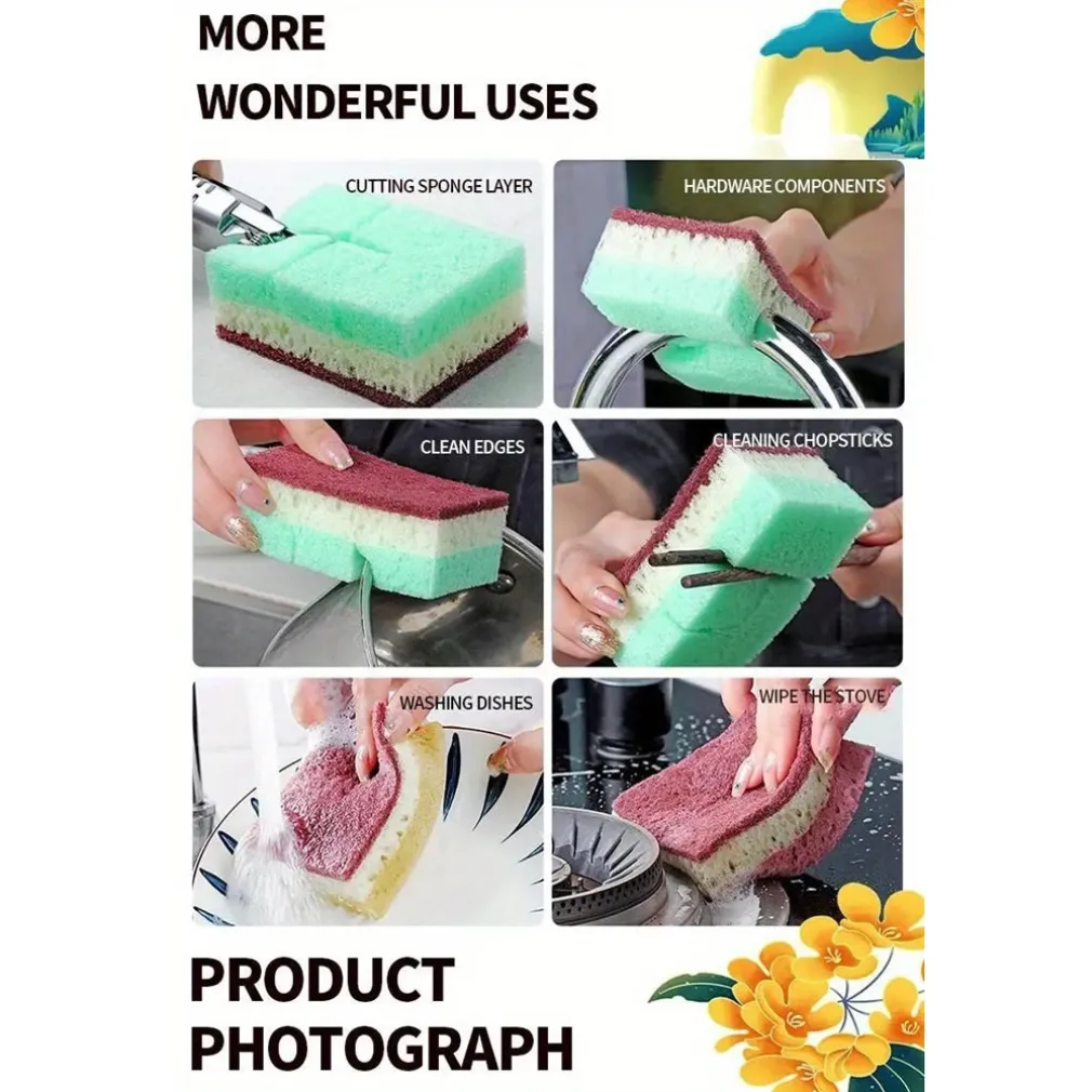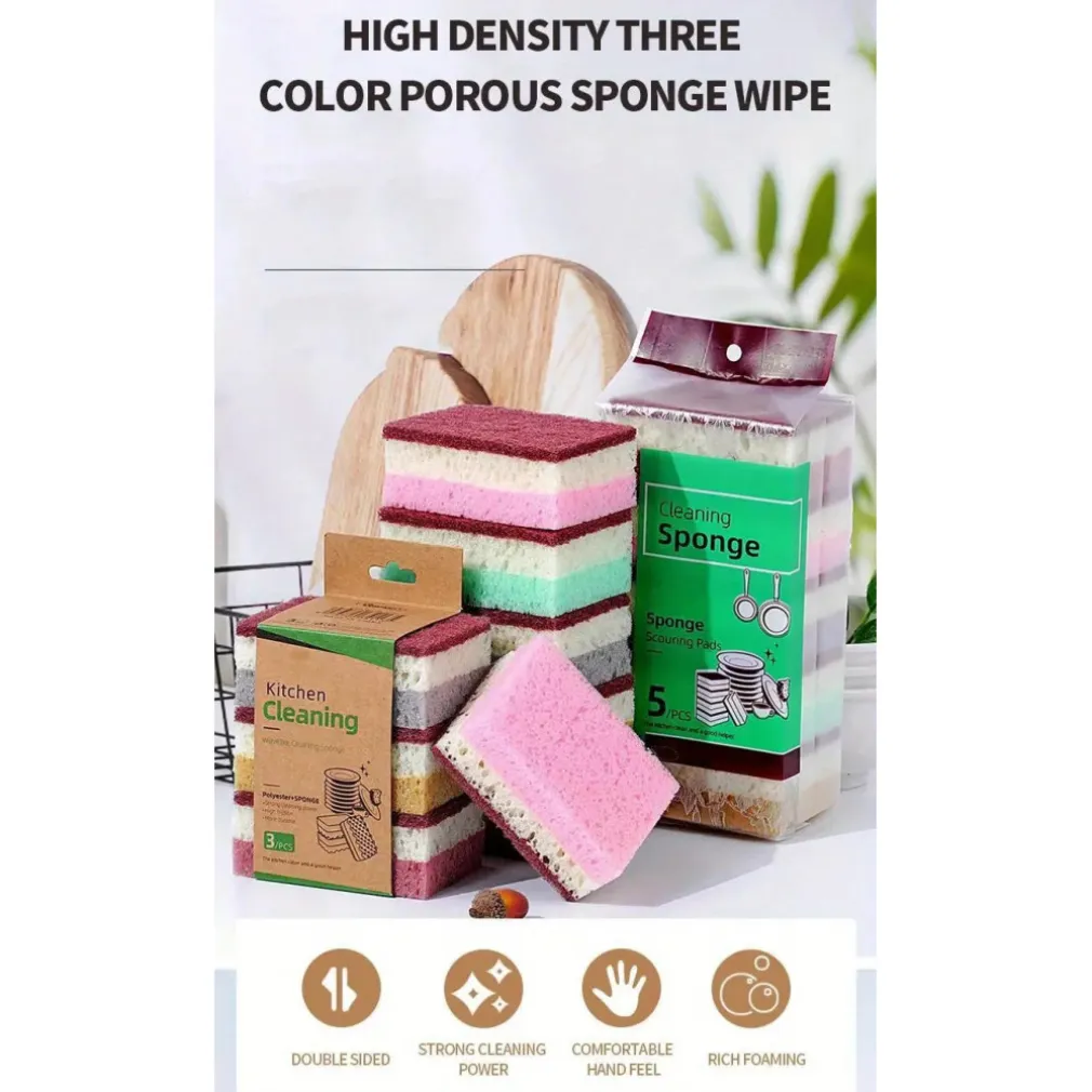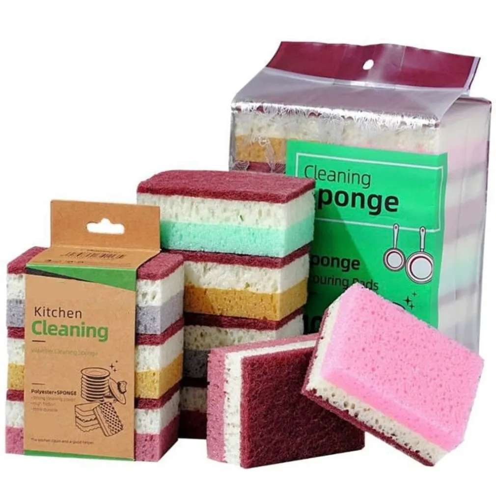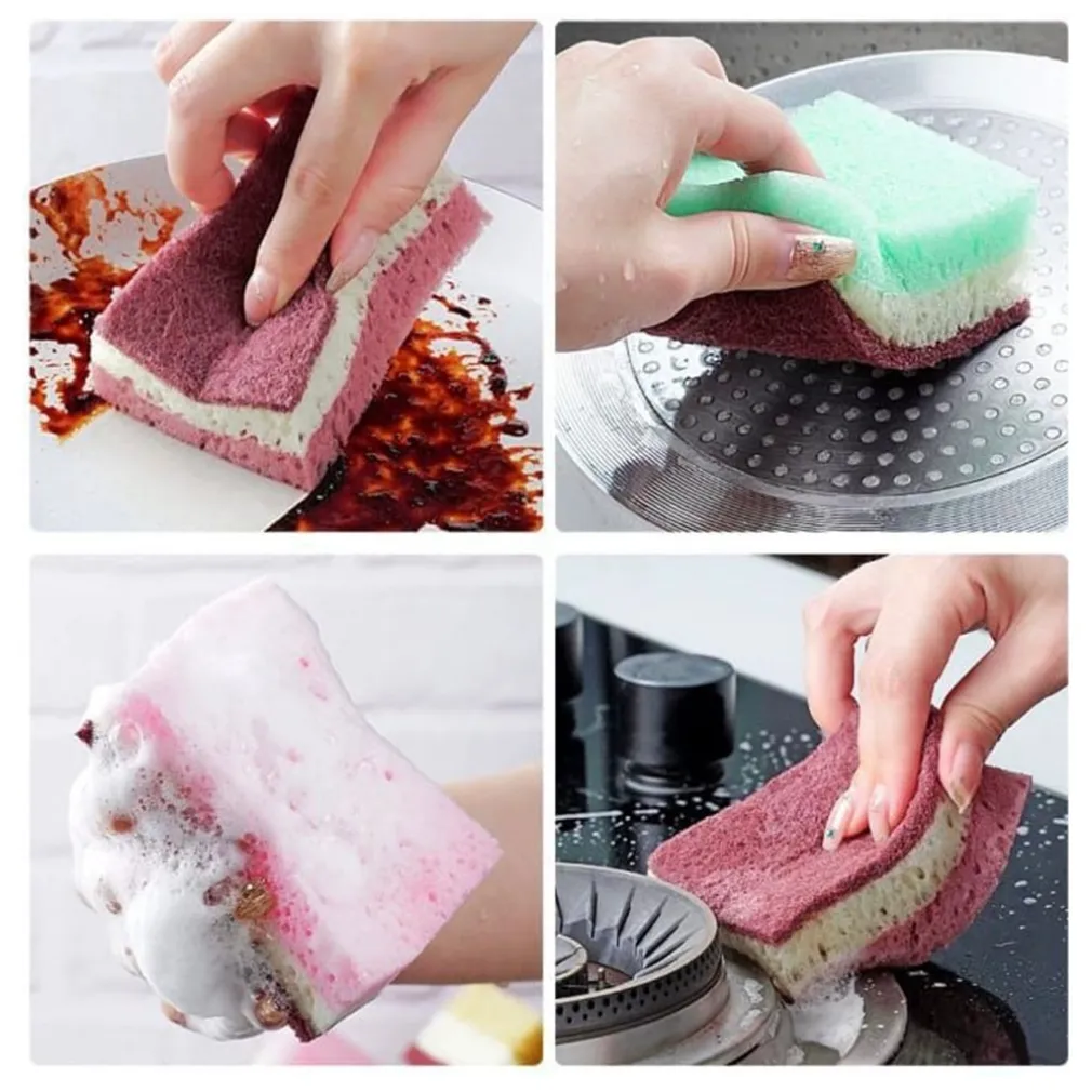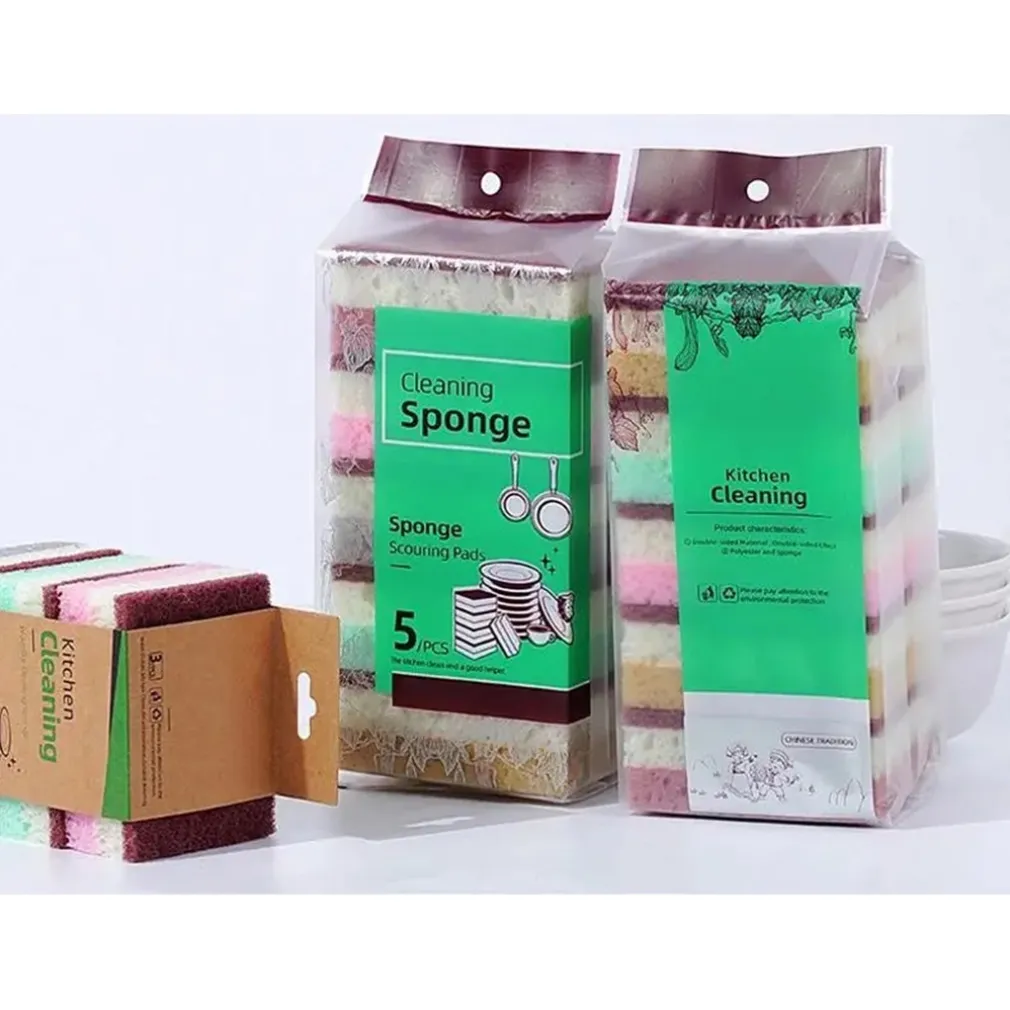 SET 5PZ SPUGNA DOUBLE FACE ABRASIVA MAGICA PER LAVARE PIATTI PADELLE PULIZIA CUCINA BAGNO