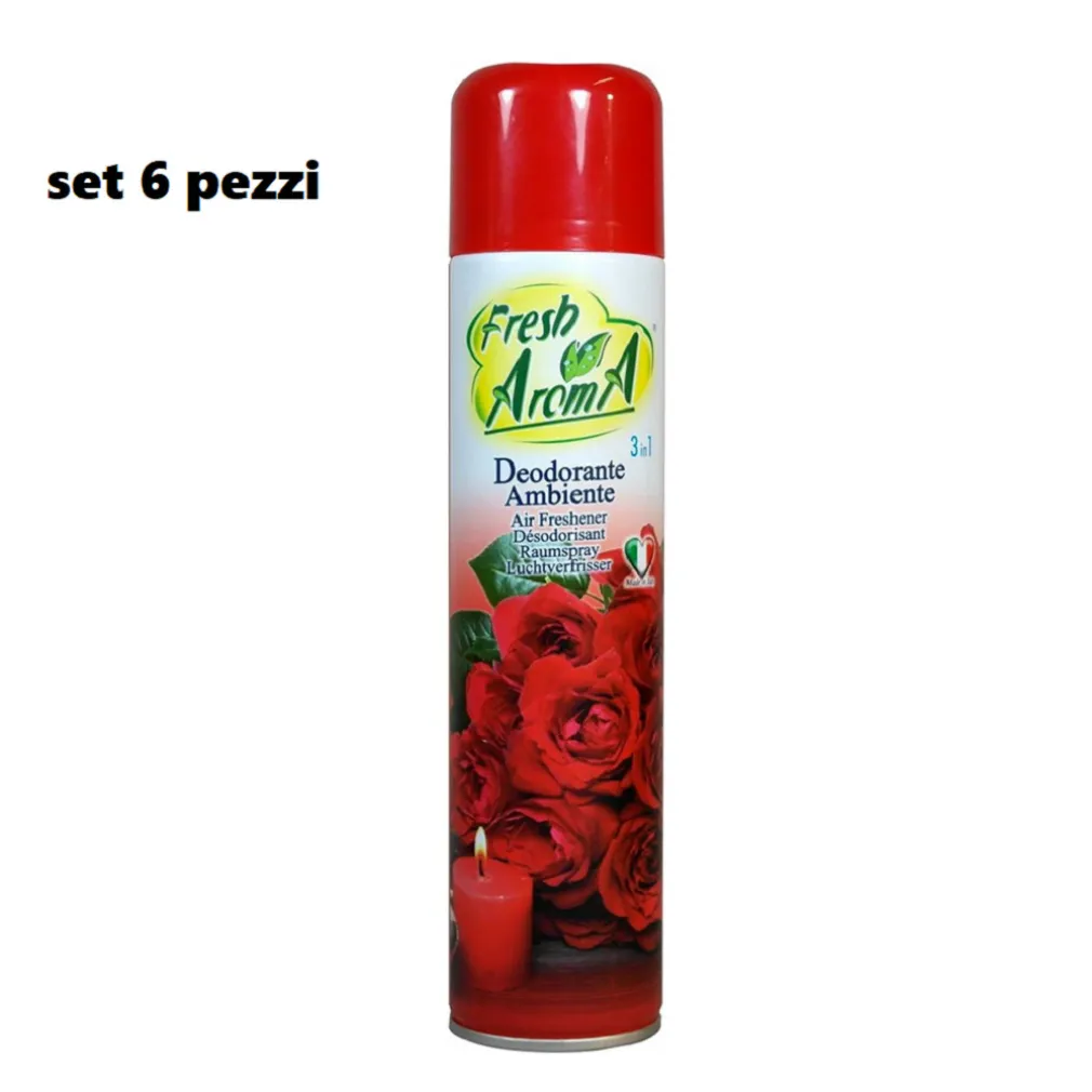 Set 6 Pz Deodorante per Ambiente Spray Profumo Casa Fresco 300 ML Rose Rosse
