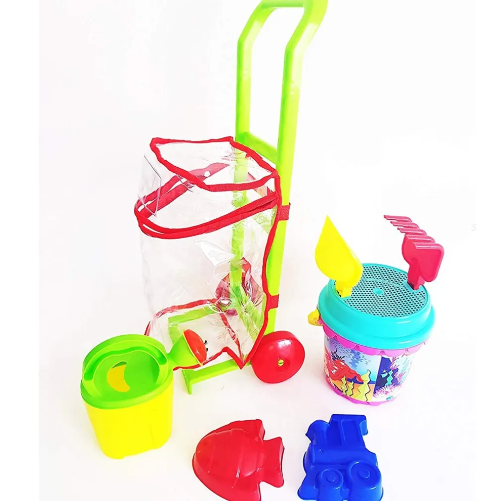 SET 8 PEZZI CARRELLO SPESA 58x18CM CON SECCHIELLO PALETTA RASTRELLO FORMINE SABBIA GIOCO GIOCATTOLO SPIAGGIA MARE SPORT BAMBINI.