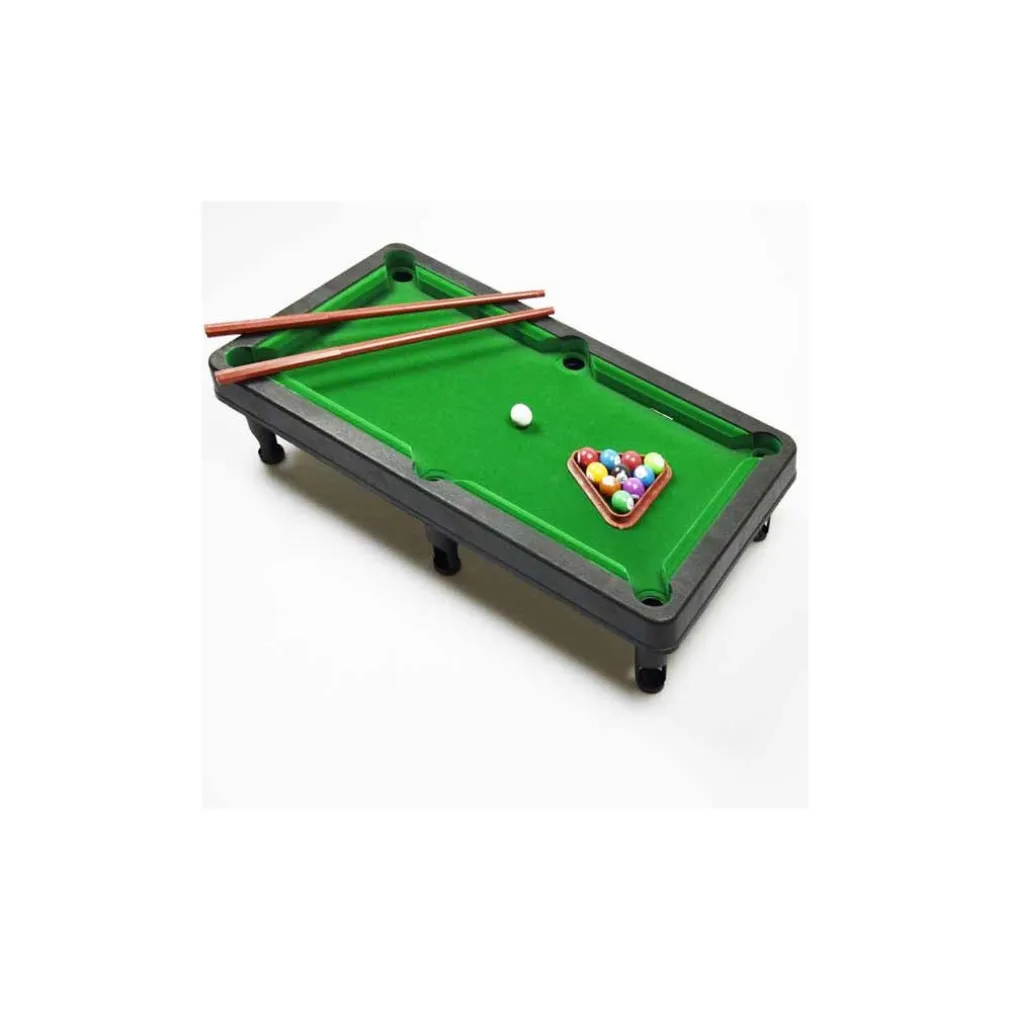 Splendido Set da Biliardo per gli amanti di questo classico gioco. Il set, per 2 giocatori è composto da un tavolo da gioco rivestito in feltro di colore verde, 11 biglie colorate, 2 stecche, triangolo