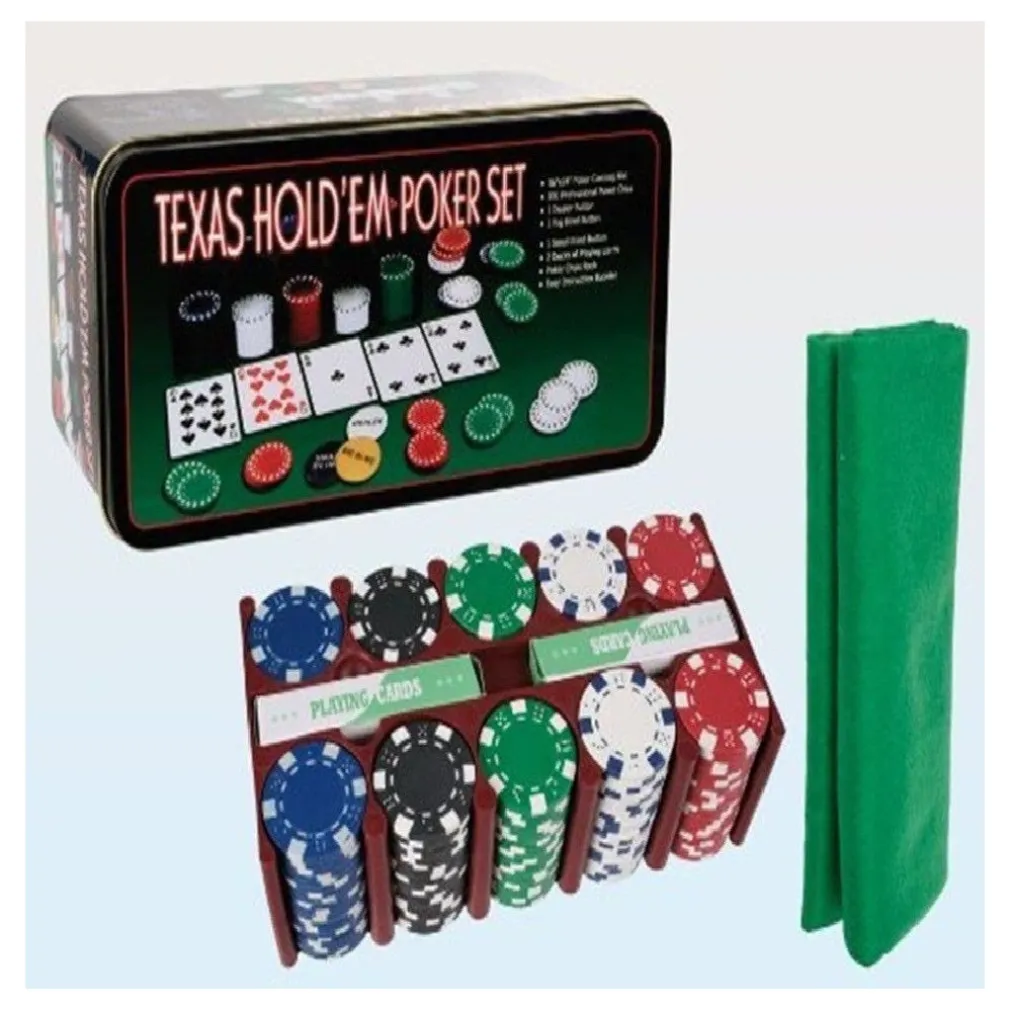 - 1 x set kit texas poker holdem in scatola 200 fiches chips con tappeto da gioco