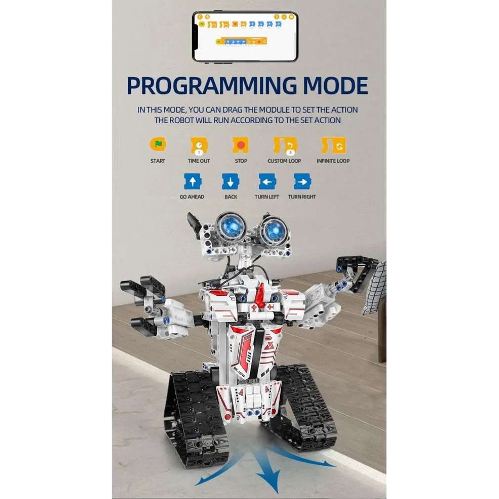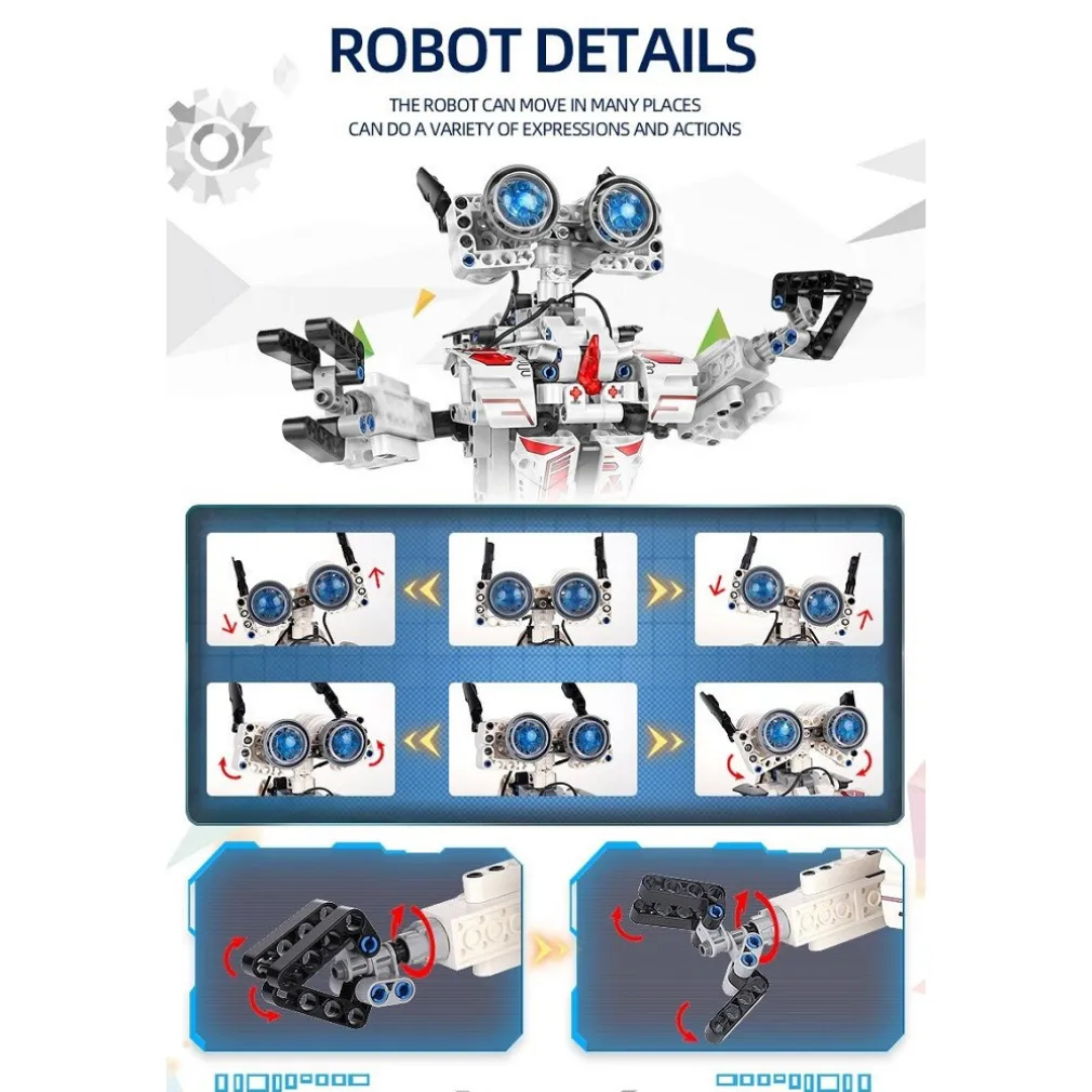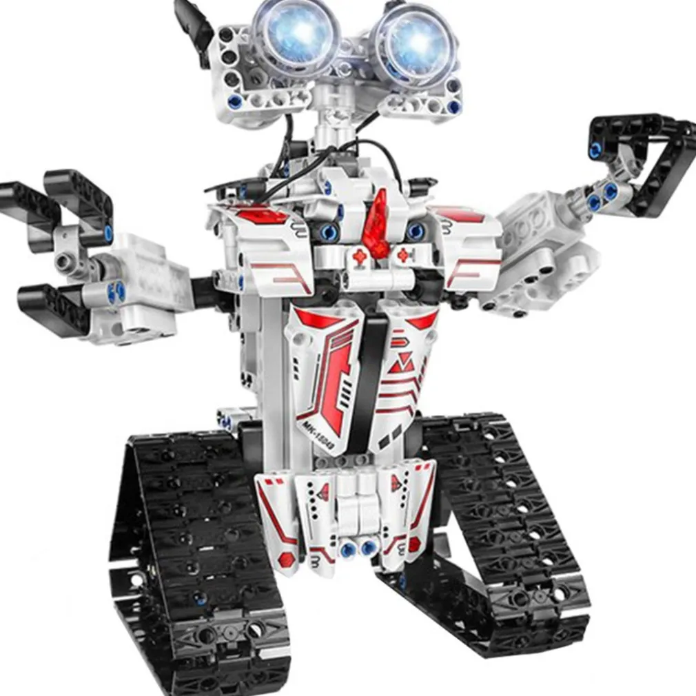 Robot unico e ricaricabile che i tuoi bambini possono realizzare con i 467 mattoncini inclusi nella confezione. Puoi controllarlo con il telecomando o scaricare l’app di controllo corrispondente sul tuo cellulare. Si muove in qualsiasi direzione desideri il bambino, permettendogli infinite ore di gioco! Realizzato con materiali di alta qualità. Angoli lisci che non danneggeranno le mani dei tuoi bambini. I giochi strutturali coltivano la concentrazione, esercitano abilità pratiche, aiutano nello sviluppo delle capacità motorie fini e promuovono la coordinazione occhio-mano.