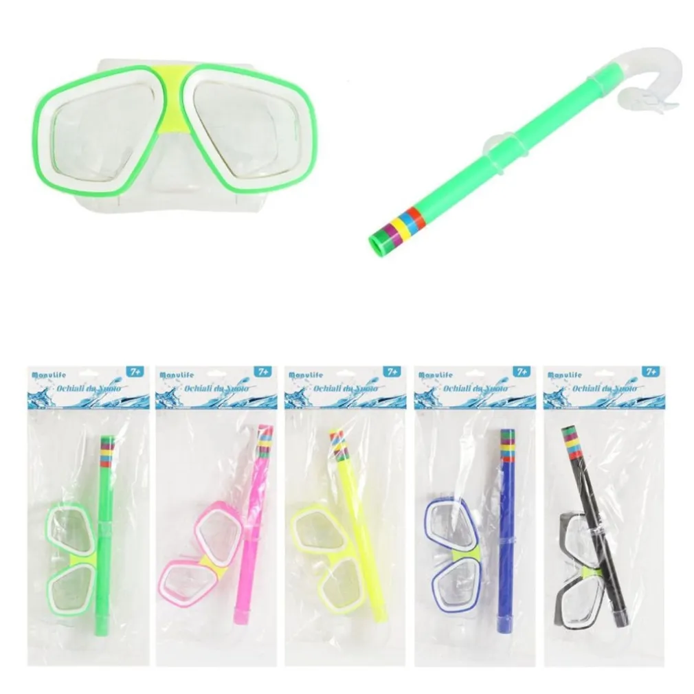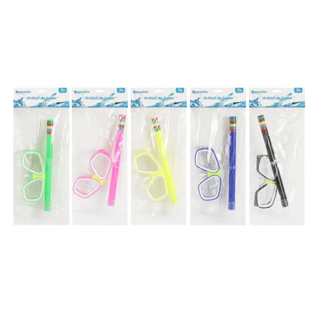 SET DA PISCINA NUOTO PER BAMBINI 7+ ANNI MASCHERA 16X10CM + BOCCAGLIO 5 COLORI 605414