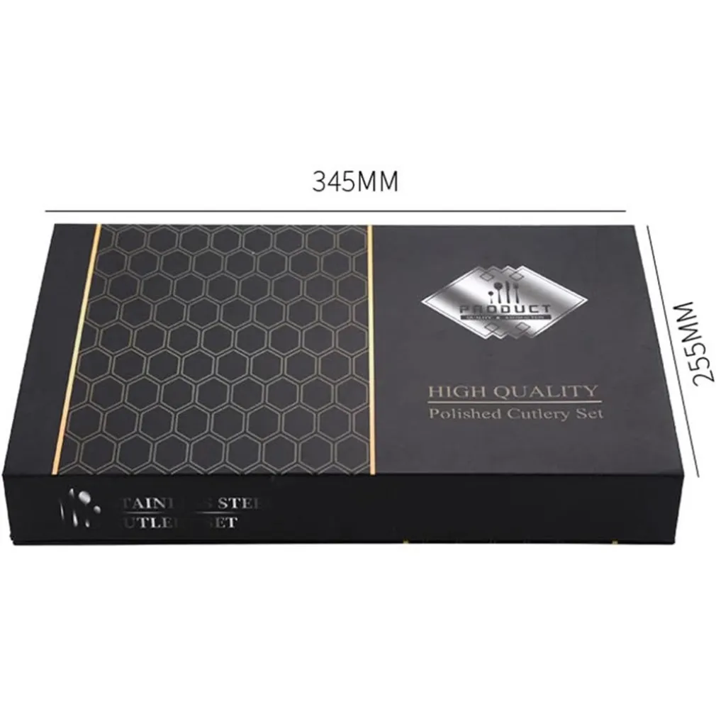 Il set comprende un totale di 24 pezzi: 6 forchette, 6 coltelli, 6 cucchiai da pranzo e 6 cucchiaini da dessert, perfetti per 6 persone.