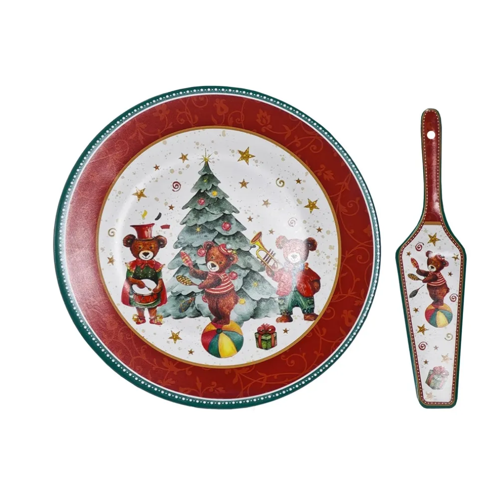 Questo splendido set piatto e paletta natalizio è perfetto per valorizzare la tua casa durante le festività. Puoi usarlo come centrotavola, come base per candele profumate, per piccoli ornamenti natalizi o semplicemente come elemento decorativo da esporre su una mensola o una credenza. Ogni modello presenta decorazioni festive raffinate e dettagliate, con orsetti, alberi di Natale e motivi tipici del periodo natalizio, rendendo ogni pezzo unico e pieno di fascino.