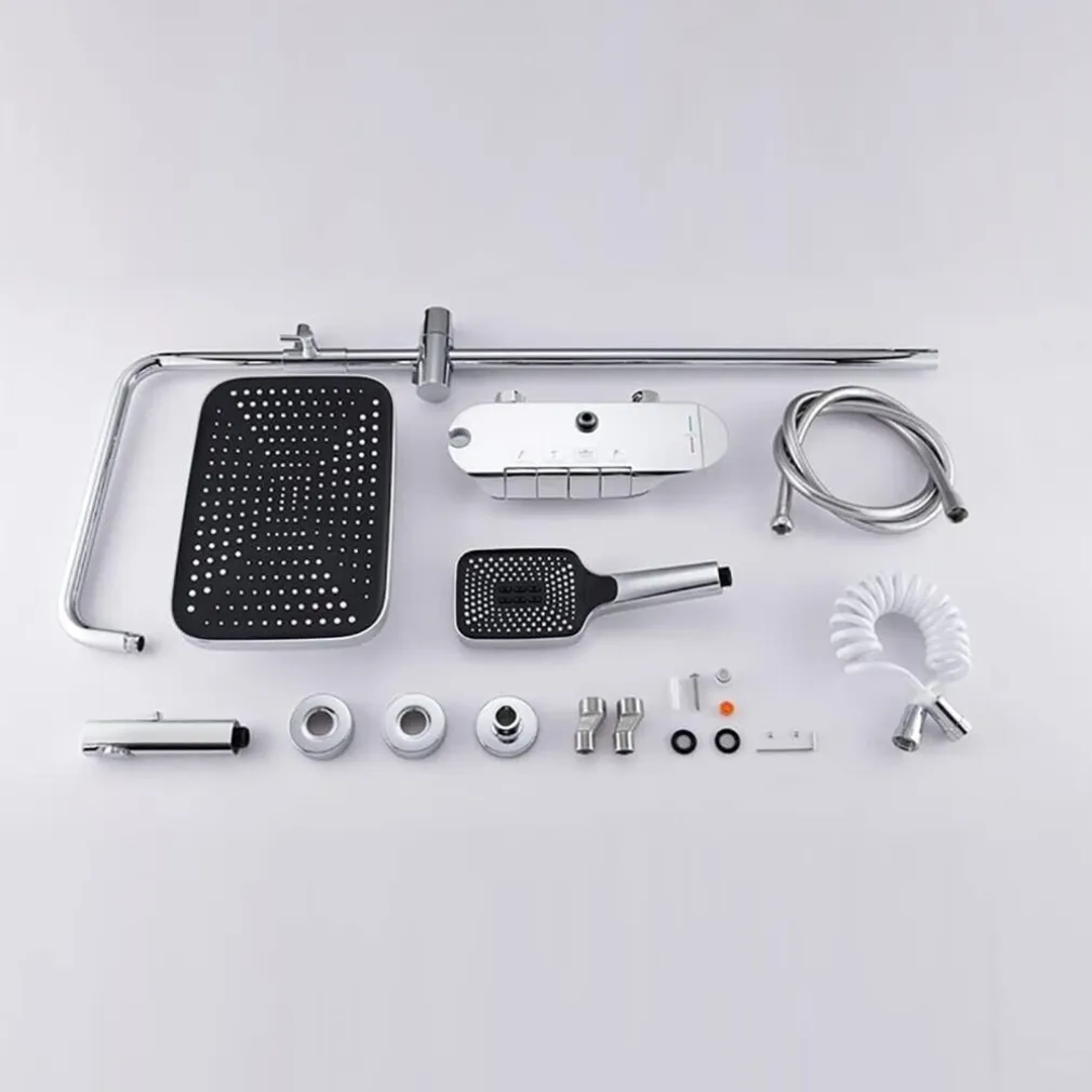 Il set include un soffione fisso, una doccetta mobile, una doccetta bidet, un miscelatore termostatico, un’asta doccia in acciaio inossidabile e un flessibile doccia in PVC.