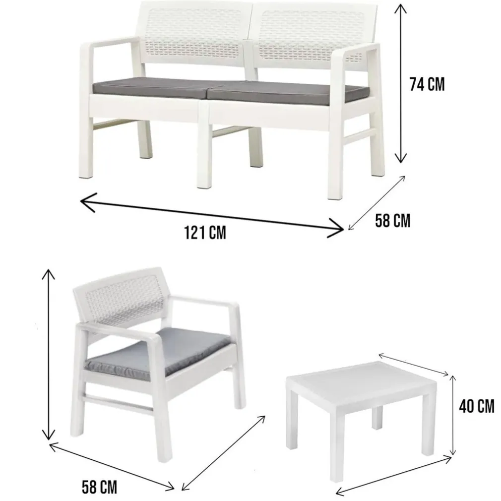 Scopri ora il fascino del set arredo giardino, la scelta perfetta per chi desidera coniugare design, praticità e comfort. Il nostro SET SALOTTO KILIMANGIARO GIARDINO ESTERNO è ideale per terrazzi, verande, giardini e spazi piscina, offrendo un’elegante soluzione per momenti di relax o convivialità all’aperto. Composto da 1 divano, 2 poltrone e 1 tavolino con effetto rattan, include 4 comodi cuscini ed è progettato per resistere agli agenti atmosferici.